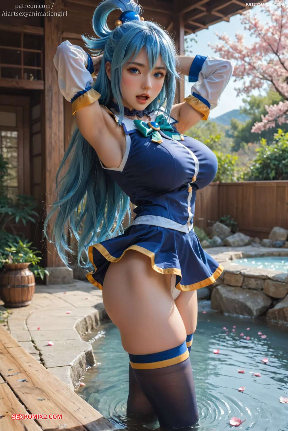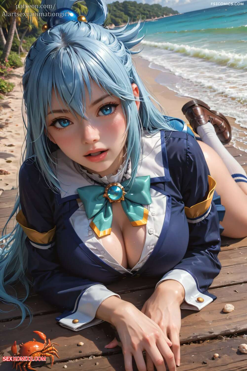 Порно комикс Water Goddess. AiASAG Красотка Аква возбуждена и желает секса. Она раздевается и позирует перед своим дружком, вызывая у него стояк, после чего раздвигает ножки и дает себя трахнуть.