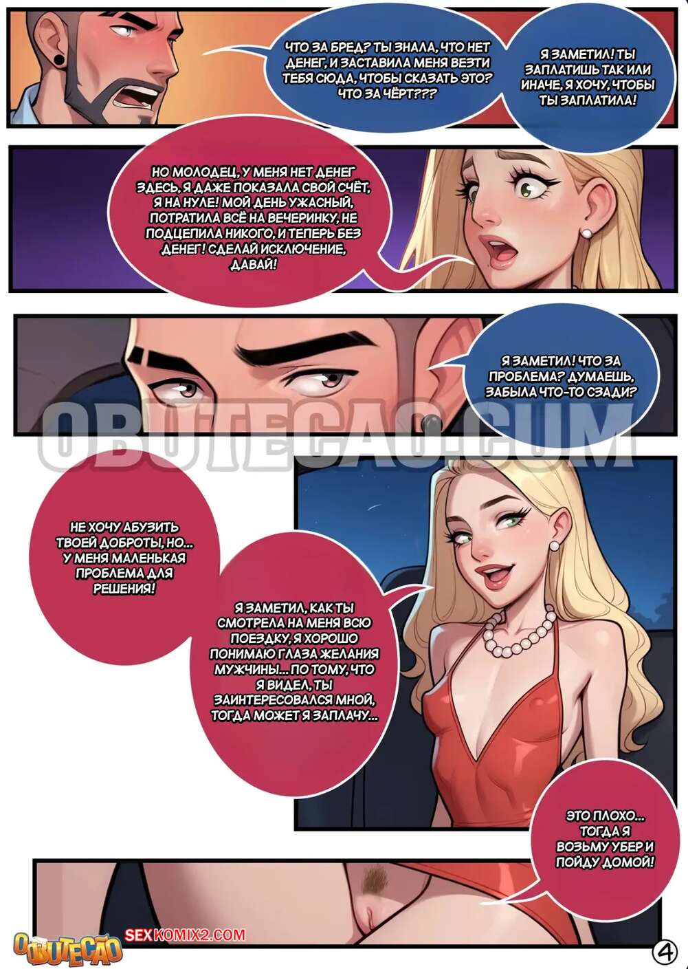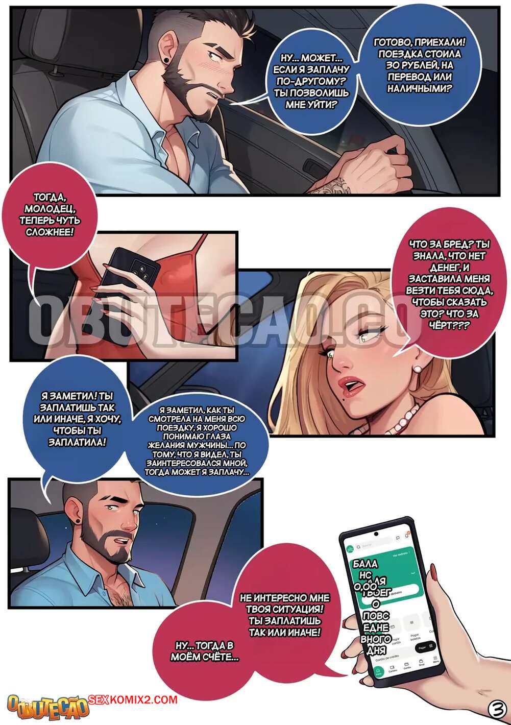 Порно комикс Оплата убера. Pagando o uber com o xerecard. O Butecao Горячая блондинка заказала такси, но у нее не было денег на оплату. Поэтому красотка сняла трусики и раздвинула ножки перед водителем, чтобы он ее трахнул и заполнил своей спермой.