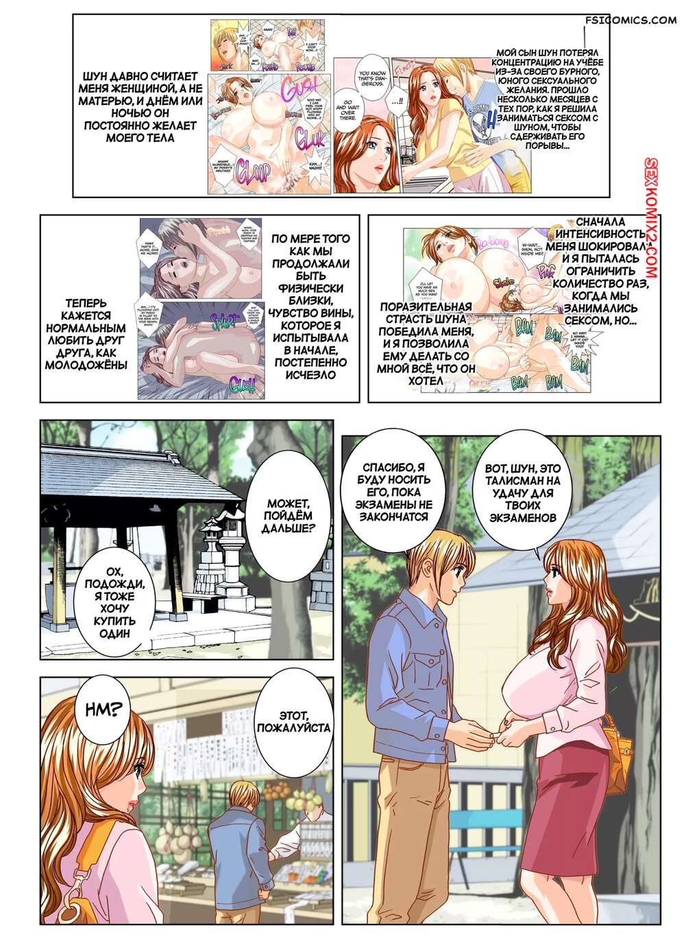 Порно комикс Желание Скарлет. Часть 4. Scarlet Desire EX. Nishimaki Tohru Парнишка отправился на прогулку со своей горячей мамочкой, желая трахнуть ее. Они нашли уединенное место в парке, где красотка раздвинула ножки перед сыном и дала трахнуть себя.