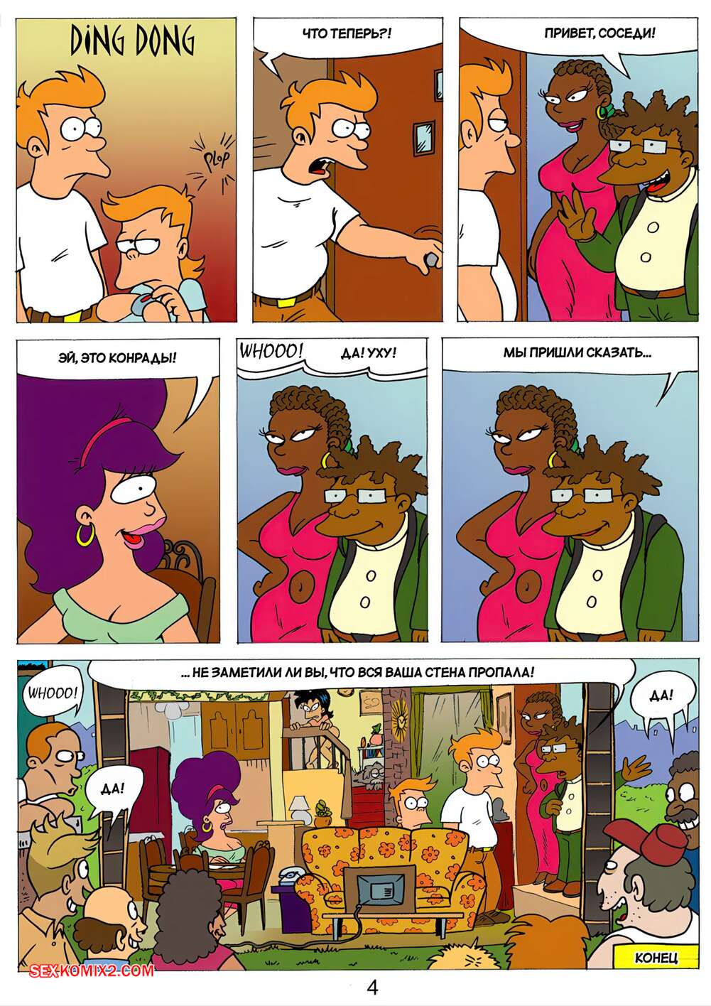 Порно комикс Футурама. Любовь и брак. Short Fancomics. Pieter Antonissen. Красотка надела платье, в котором выглядела очень сексуально, и это привлекло внимание Фрая. Девушка заметила на себе похотливые взгляды парня и предложила ему трахнуться.
