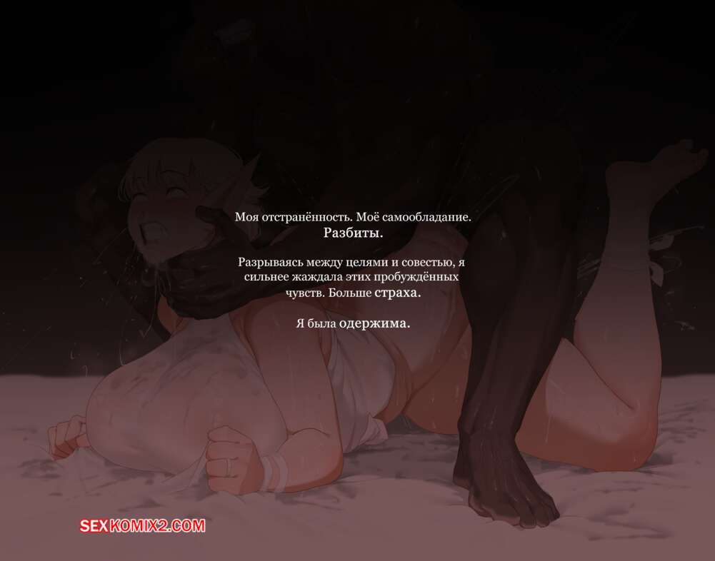 Порно комикс Падшая эльфийка Лираэль. Sora Темнокожий орк возбудился, увидев блондинку эльфийку задницей кверху. Он поспешил достать свой член и вставил его в девушку, после чего хорошенько ее выебал.