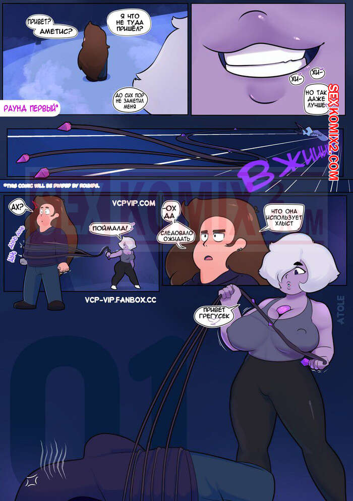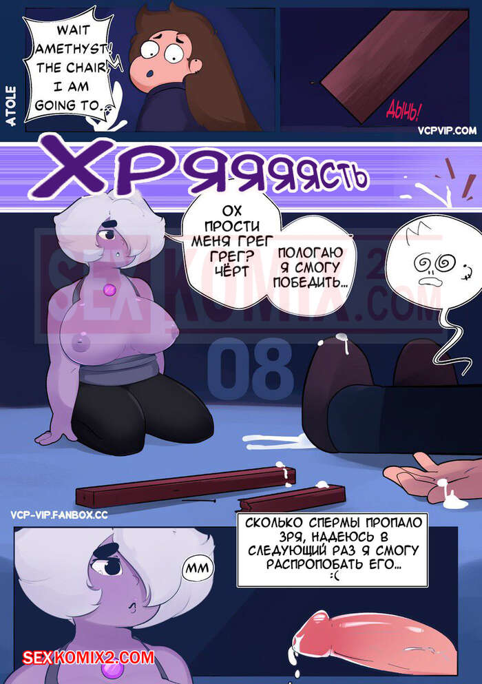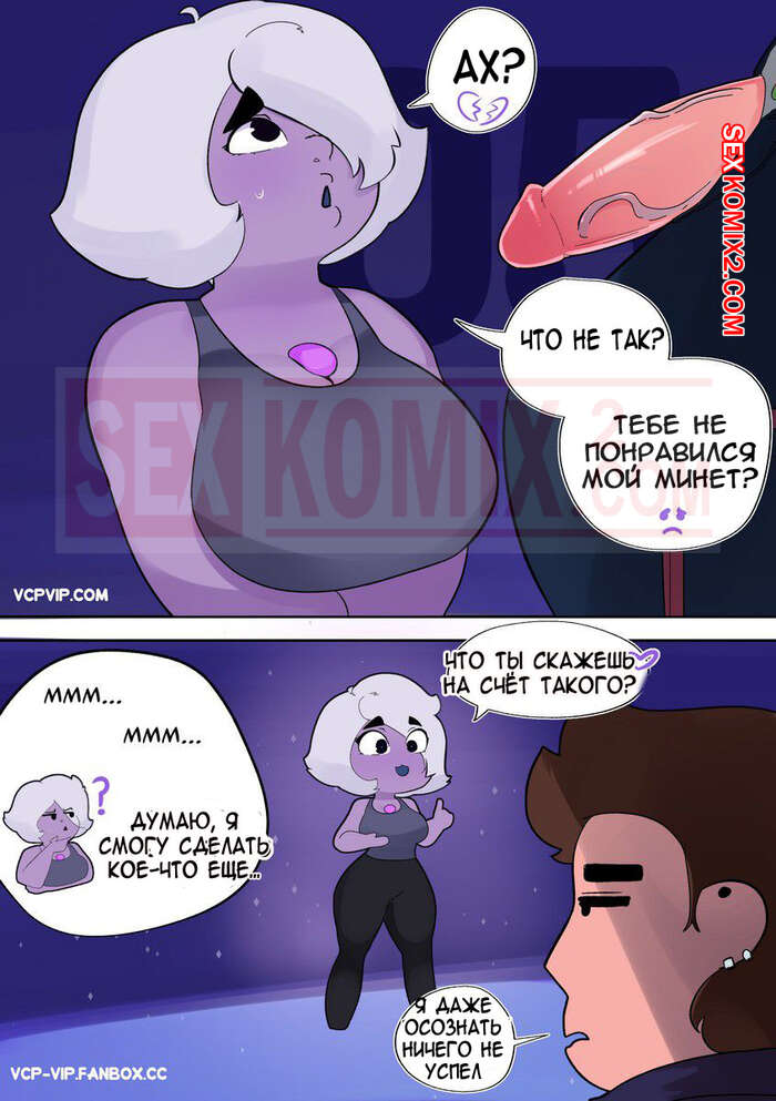 Порно комикс Вселенная Стивена. Часть 2. Фиолетовая тигрица. Lilarts. После того как парень трахнул двух самоцветок и оставил их без сил, им на помощь примчалась самая сильная из них, чтобы на себе испытать его большой член.