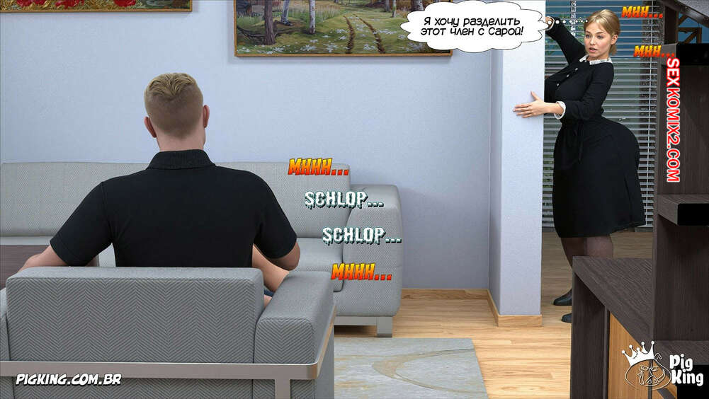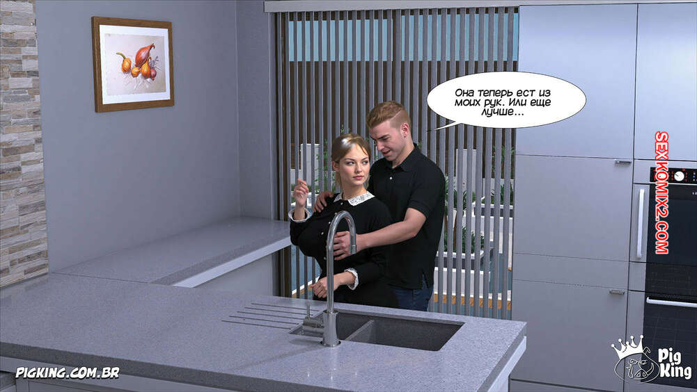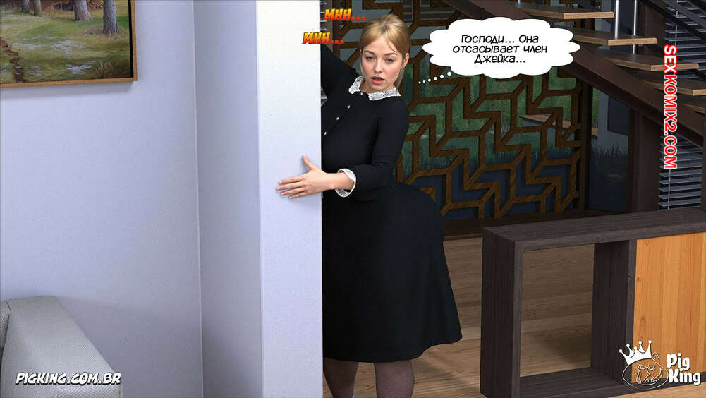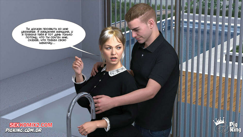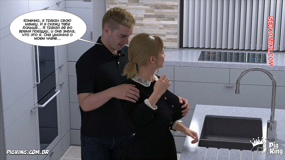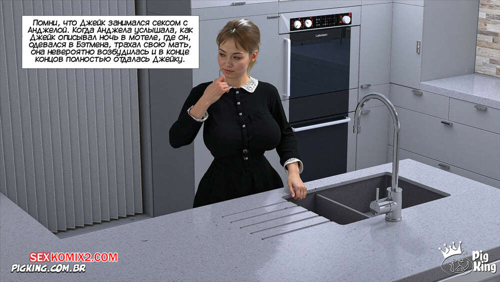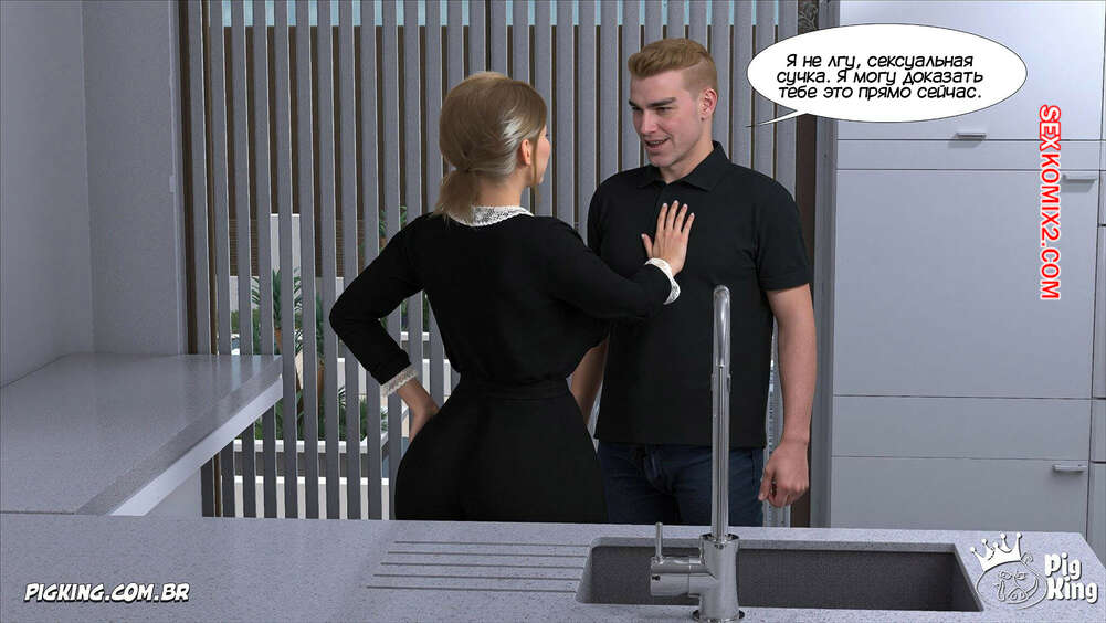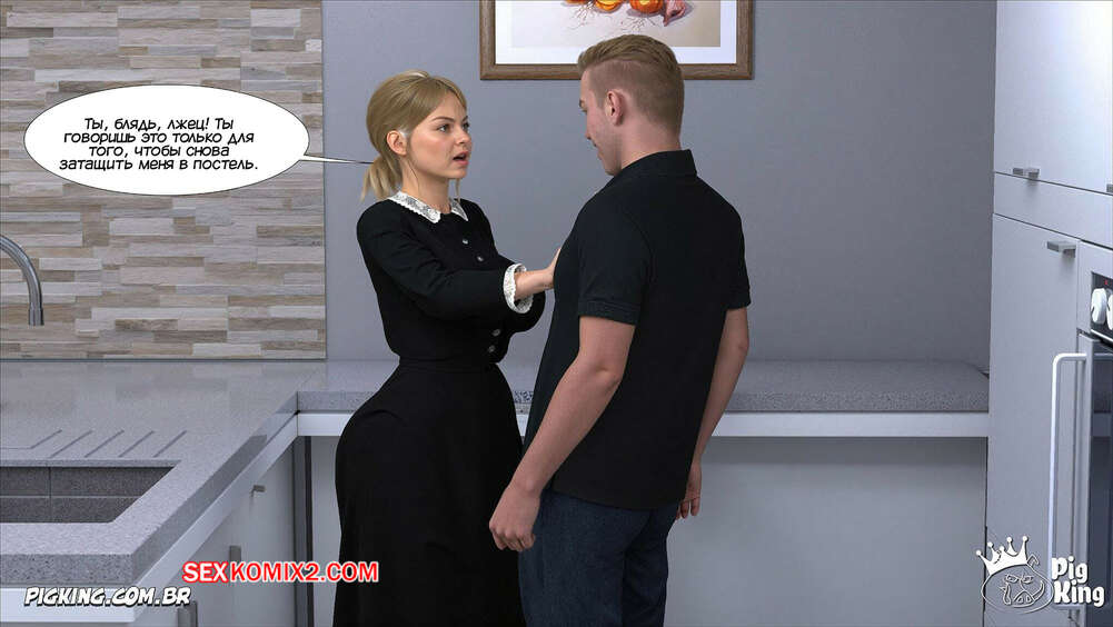 Порно комикс Адская деревня. Мое сладкое соблазнение. Часть 5. My Sweet Seduction. Pig King Джейк подкатывал к своей горничной, желая трахнуть ее, и в итоге рассказал, что занимался сексом со своей мамкой. Горничная хочет убедиться в происходящем и парень ей в этом не отказывает.