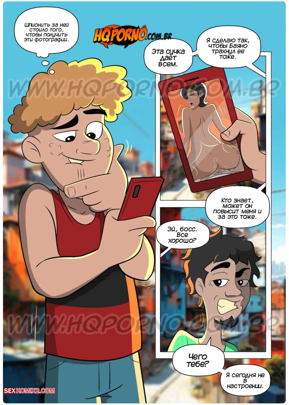 Порно комикс Семейка черных. Часть 15. Familia Black. HQporno Молодой парнишка шантажом заставил Шэрон заняться сексом с Баяно. Красотка пришла ночью домой к парню и отсосала его член, после чего он выебал ее во все дырочки.