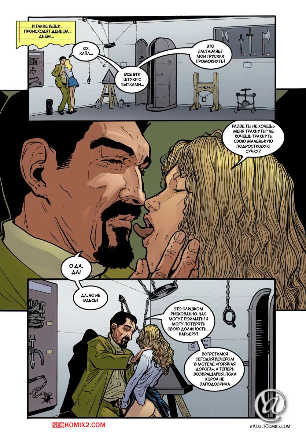 Порно комикс Месть школьниц. Часть 5. Schoolgirls Revenge. Yair Herrera Горячая блондинка встречается ночью со своим отчимом. Он хорошенько лижет пизденку девушки и трахает ее своим большим хуем, после чего красотка встает на колени и просит кончить ей на лицо.