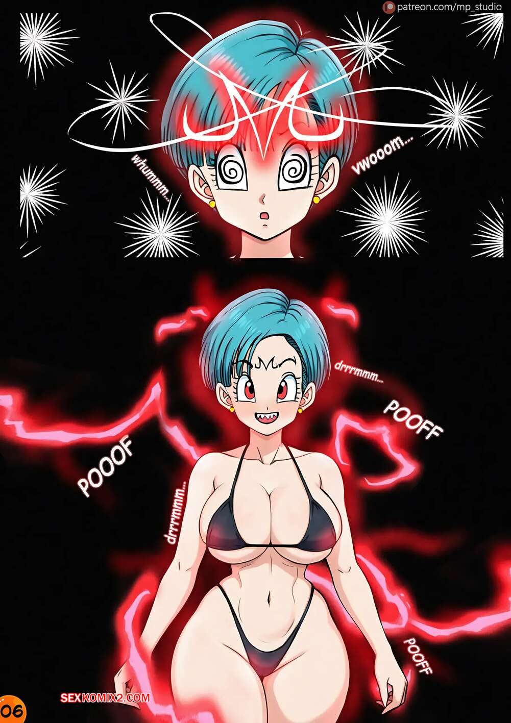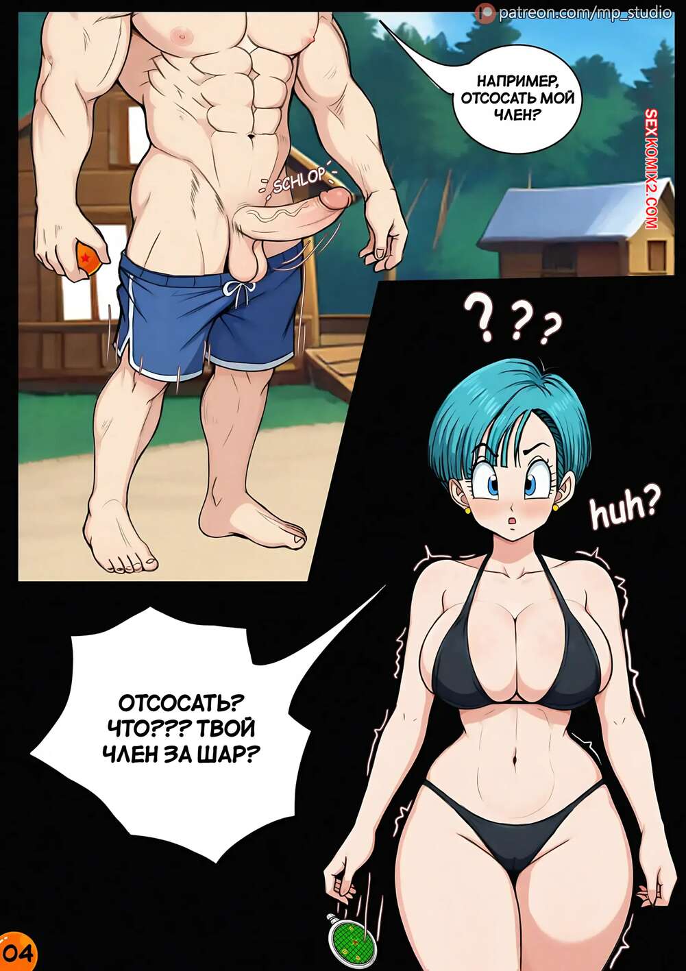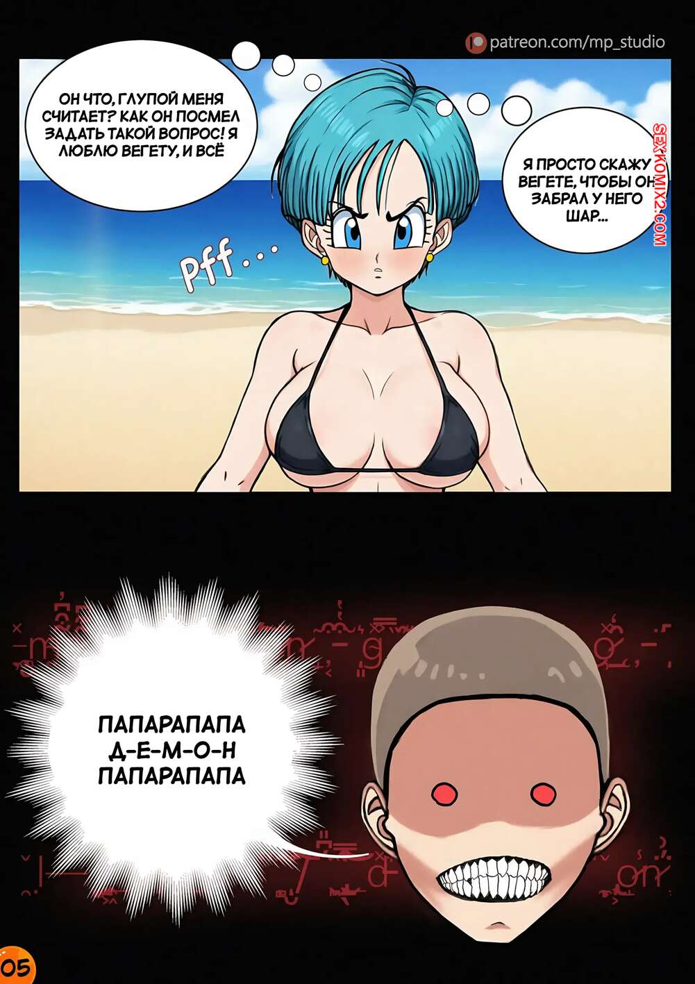 Порно комикс Dragon Ball. Маджин Бульма. Majin Bulma. MP studio. Красотка Бульма пришла на пляж, где парень быстро привлек ее внимание своим большим хуем. Возбужденная девушка встала на колени и стала сосать хуй парня, доставив ему невероятный оргазм.