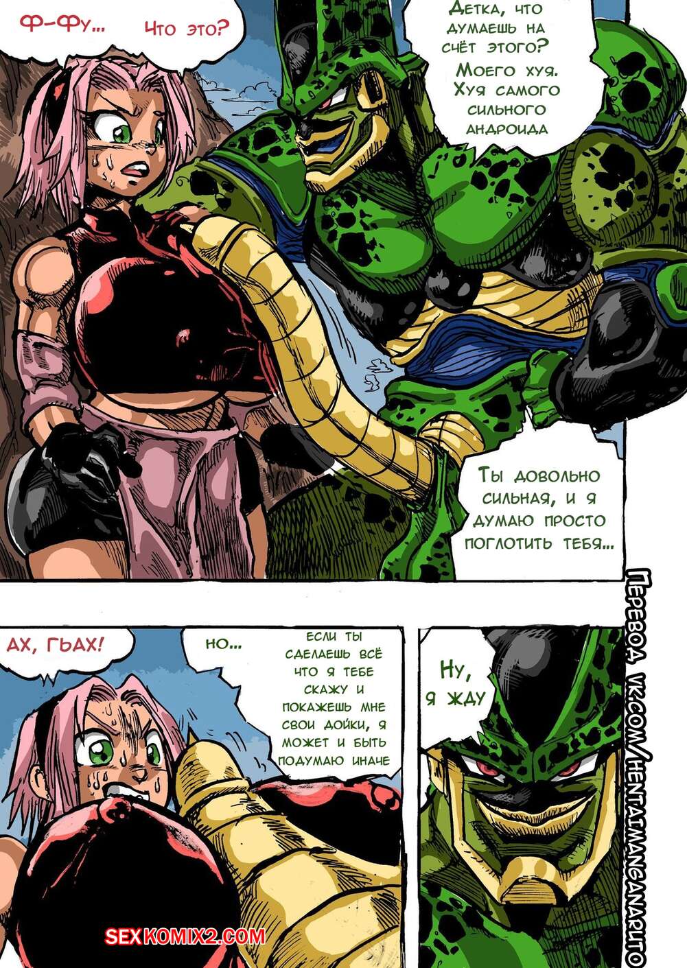 Порно комикс Наруто. Sakura X Cell Андроид считает себя совершенным, поэтому он решил подкатить к Сакуре и удивить ее своим огромным членом. Девушка была поражена его размерами, но ничего не желала с ним делать. Но он силой заставил ее сосать его хуй, а потом выебал ее до потери сил.