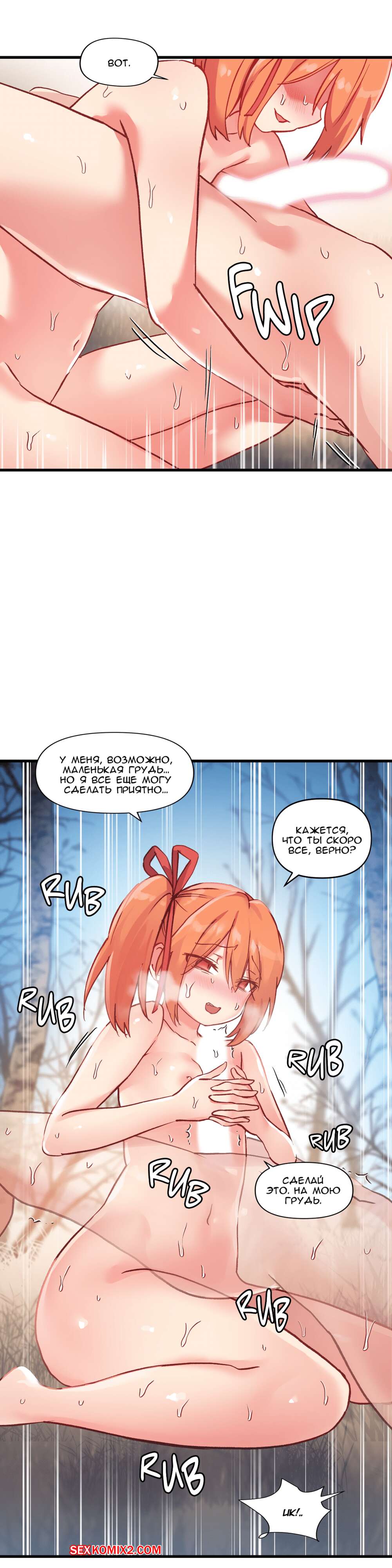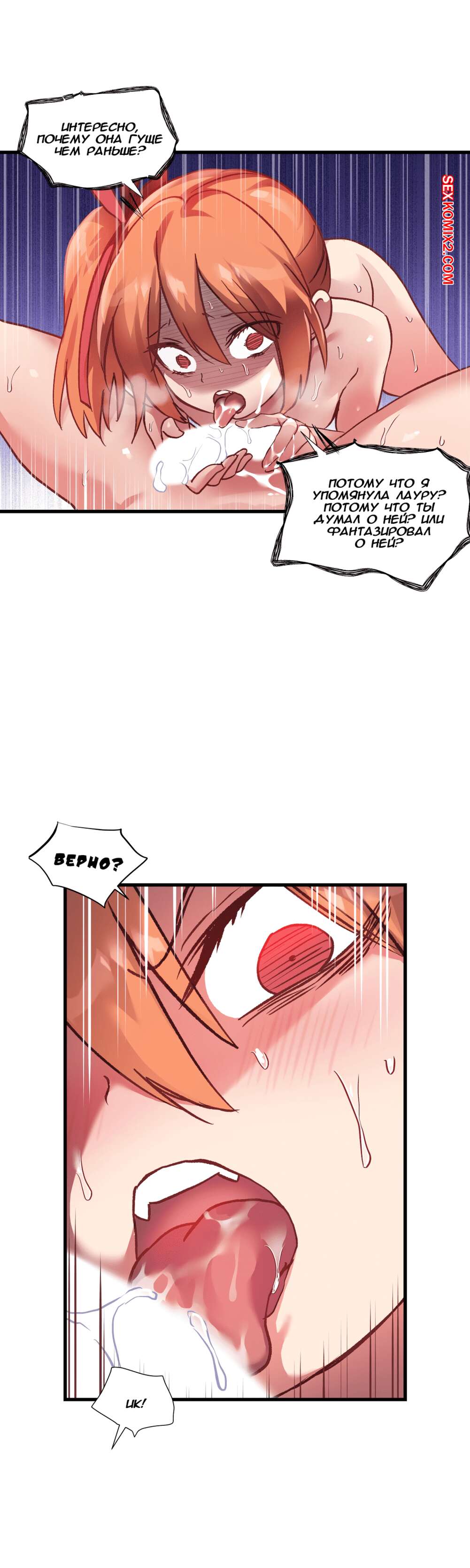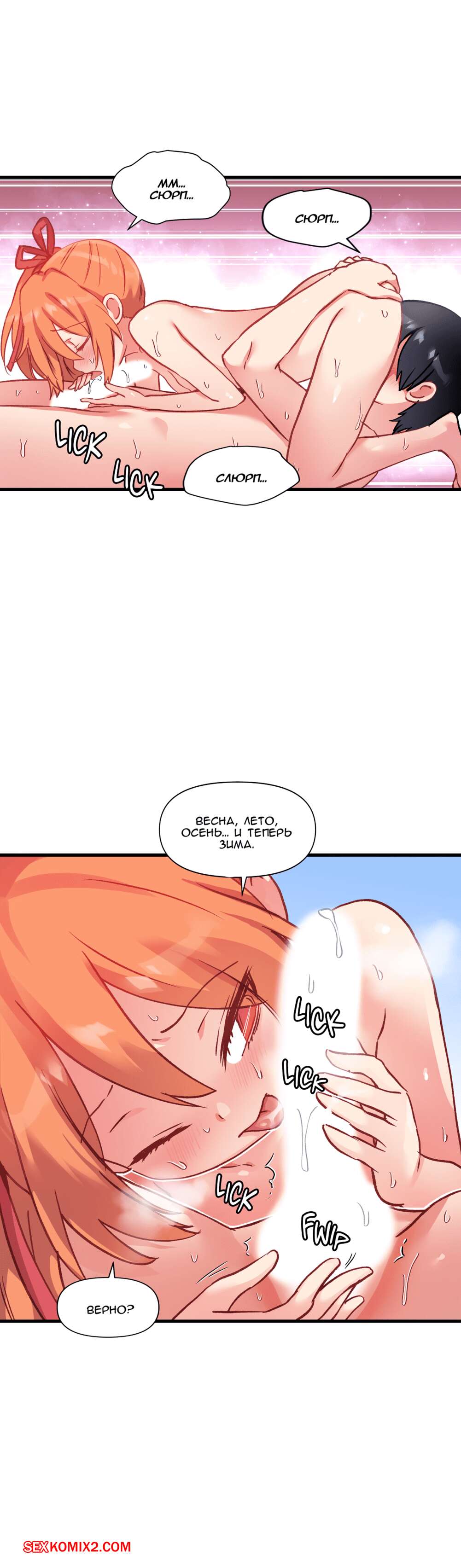 Порно комикс Под наблюдением моя первая любовь и я. Части 45 и 46 и 47 После того как рыжая красотка набросилась на своего дружка, она стала отсасывать его хуй, чтобы он стал каменным, а парень в это время стал отлизывать пизду подруги. Он очень хотел ее выебать и попытался вставить в нее хуй, но подруга его оттолкнула и стала дрочить свою пизду, дразня пацана.