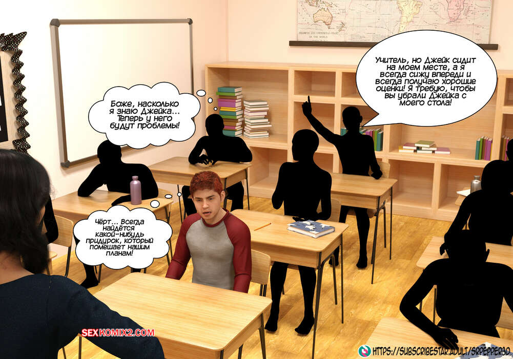 Порно комикс Мой учитель моя мачеха. Часть 2. My Teacher is My StepMom. Sr Pepper Джейк застал свою мачеху в ванной и соблазнил ее, чтобы трахнуть красотку, и кончил ей на задницу. Милфа прогнала пасынка из ванной, а сама стала принимать душ, чтобы смыть с себя сперму.