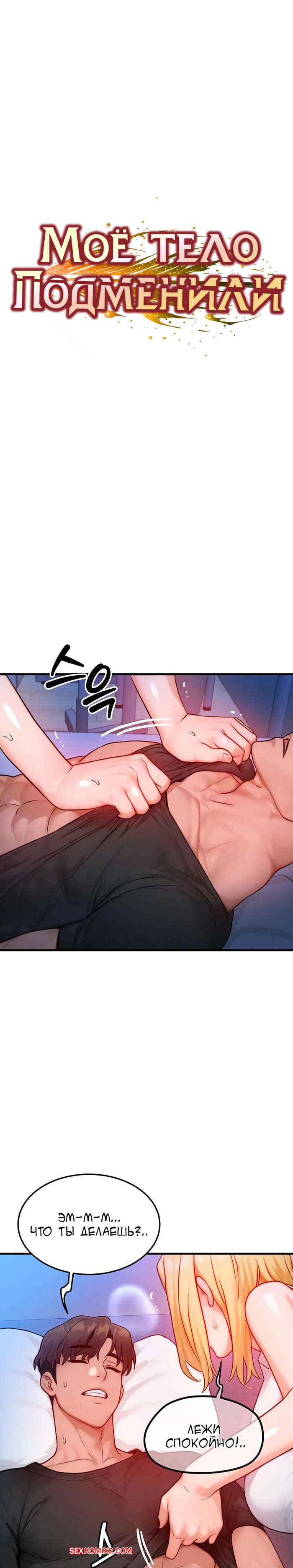 Порно комикс Моё тело подменили. Часть 22 и 23 и 24 и 25. mom eul bakkwochigi danghaessda Возбужденная блондинка пробралась ночью в комнату своего дружка и стала глубоко заглатывать его член. Красотка поспешила раздетсья и раздвинула ножки, чтобы парень ее выебал.