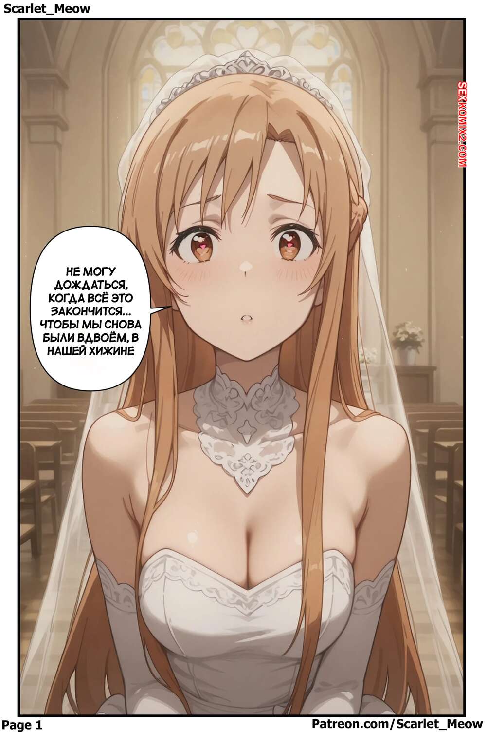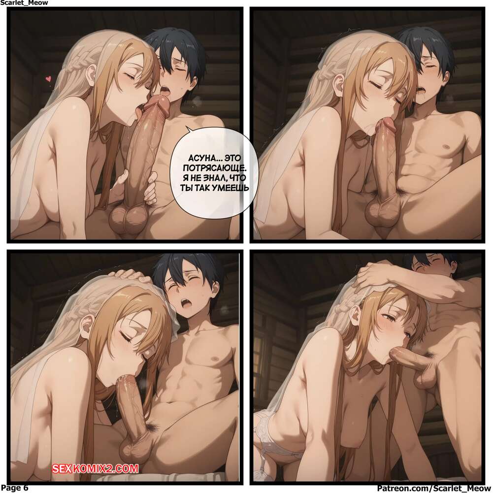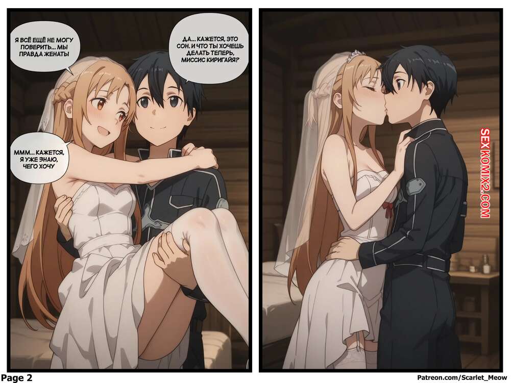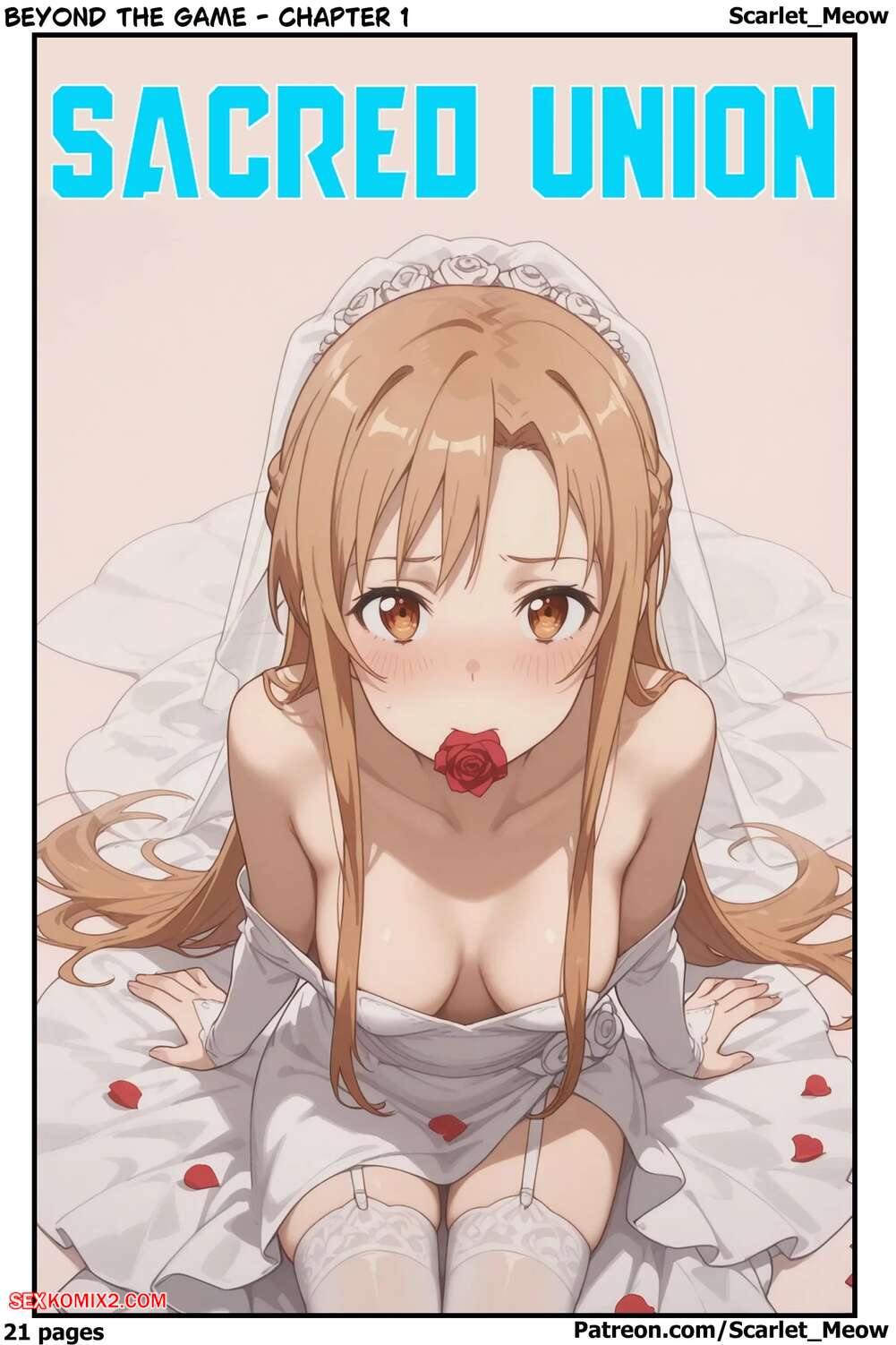 Порно комикс Sword Art Online. Священный союз. Sacred Union. Scarlet Meow. Парень с девушкой сыграли свадьбу и им предстоит первая брачная ночь. Красотка сняла платье и легла на кровать, после чего дала парню себя как следует выебать и кончить в нее.