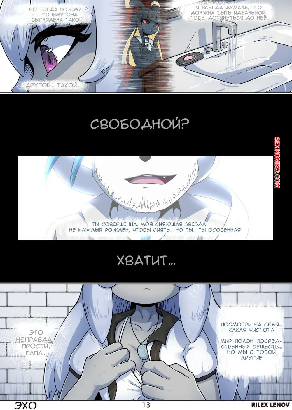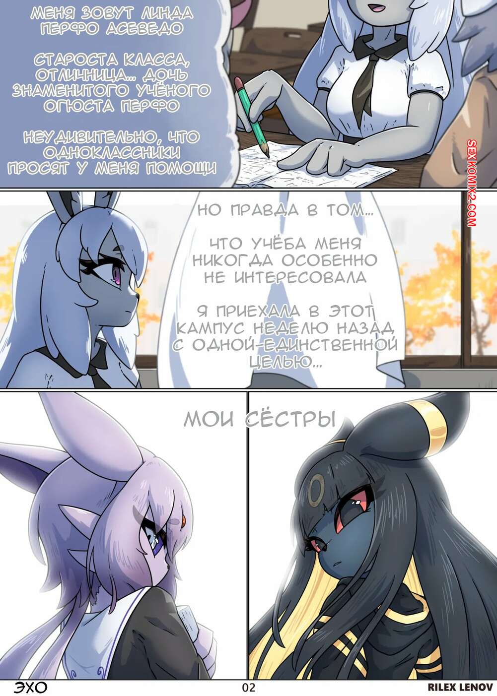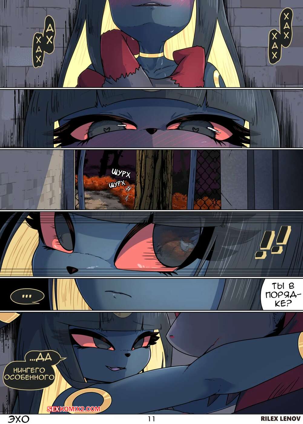 Порно комикс Pokemon. Эхо. Echoes. Rilex Lenov Девушка фурри встретилась с парнем в темном переулке, желая повеселиться. Красотка возбудила парня аппетитными формами и оседлала его член, чтобы он ее хорошенько выебал.