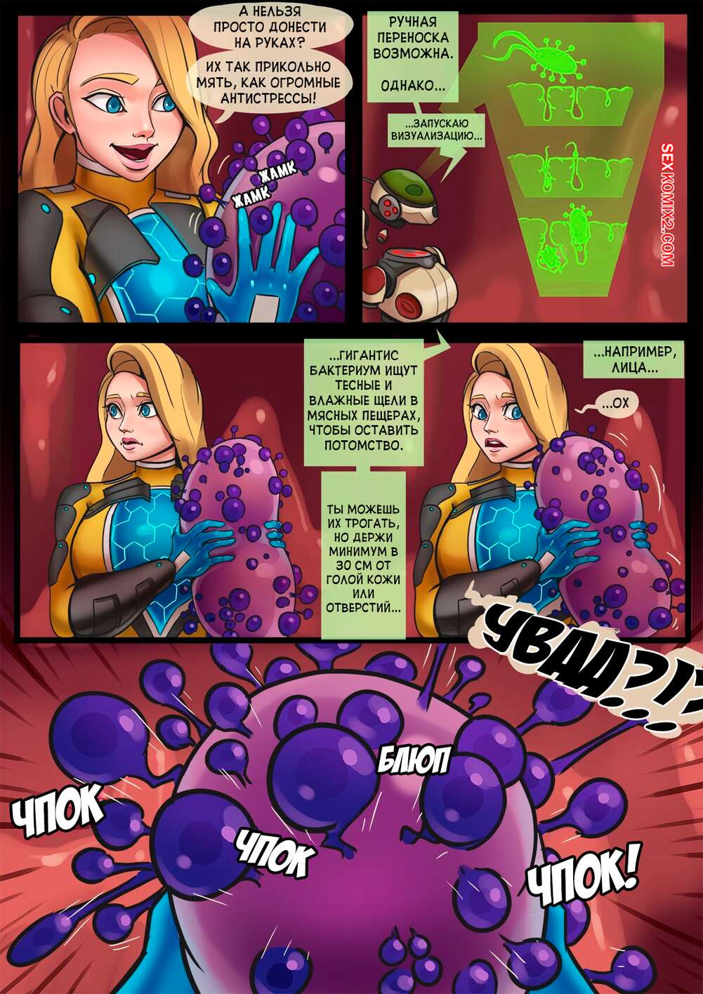 Порно комикс Баффи и бактерии. Baffy Bacterium. Sadgravy На горячую блондинку напали бактерии и поспешили проникнуть в ее дырочки и ротик. Они стали стимулировать внутренности девушки, от чего она сильно возбудилась и получила оргазм.