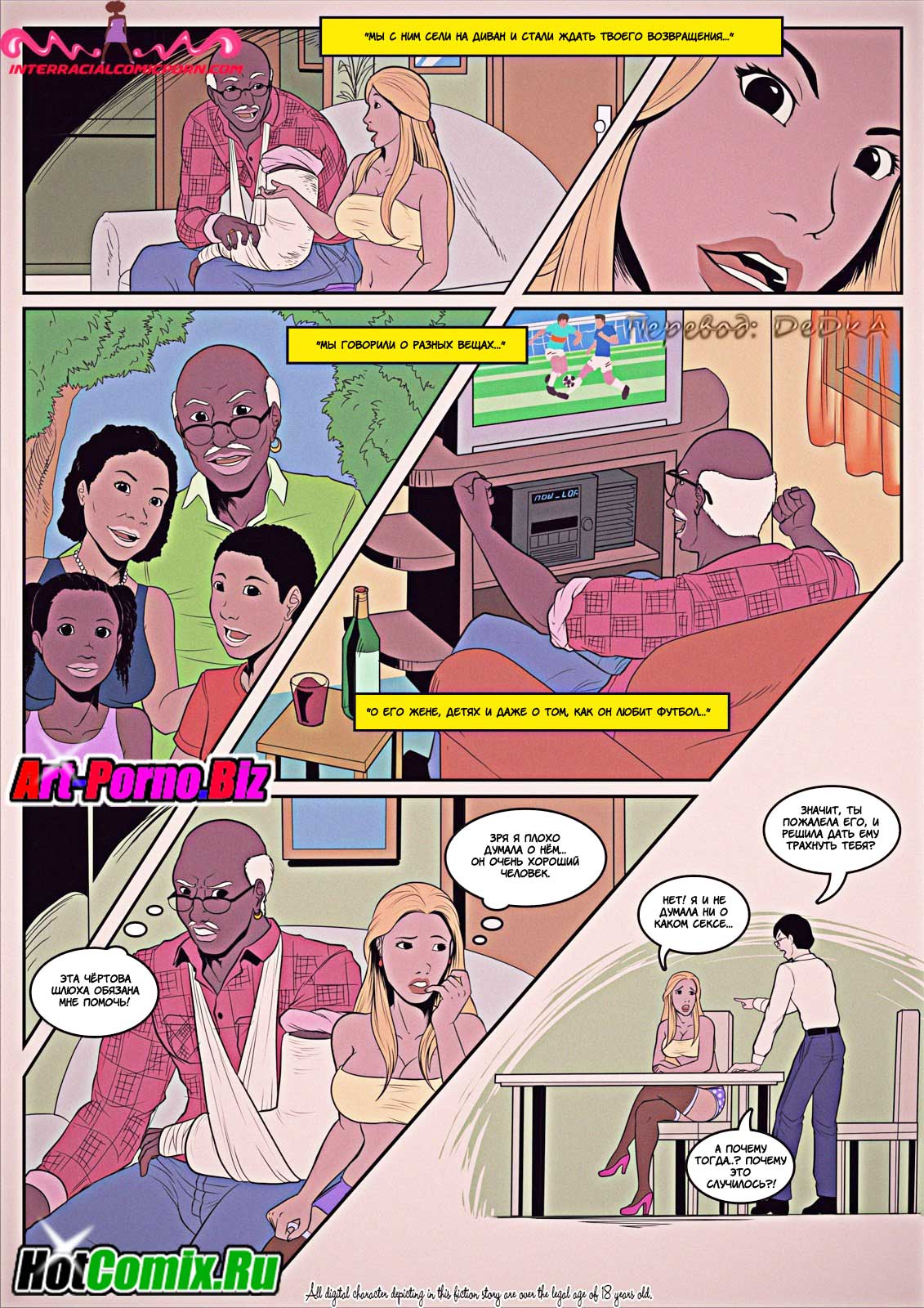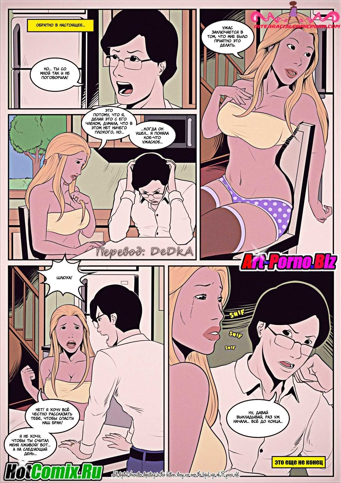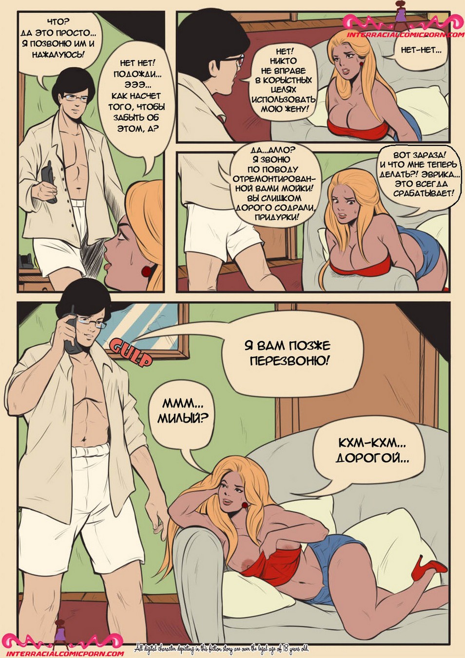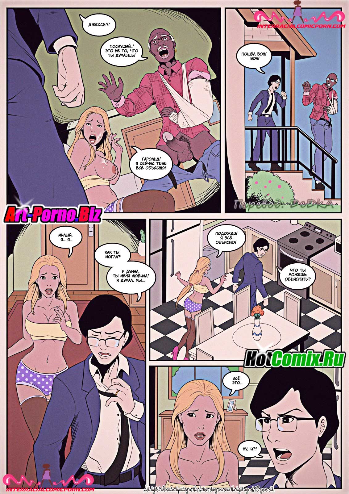 Развратные комиксы «Сантехник». Ранним утром Молодая жена пыталась соблазнить своего мужа, чтобы заняться с ним сексом, но он очень сильно был озадачен работой и отказался. Когда он ушёл на работу она обнаружила, что у них дома сломана раковина и вызвала сантехника. Чуть позже пришел чернокожий мужчина и начал ремонтировать раковину, девушка была так сильно возбуждена, что от вида того что происходило у неё на кухне она потекла. И решила соблазнить сантехника, заманив его к себе в кровать занялась жестким сексом.