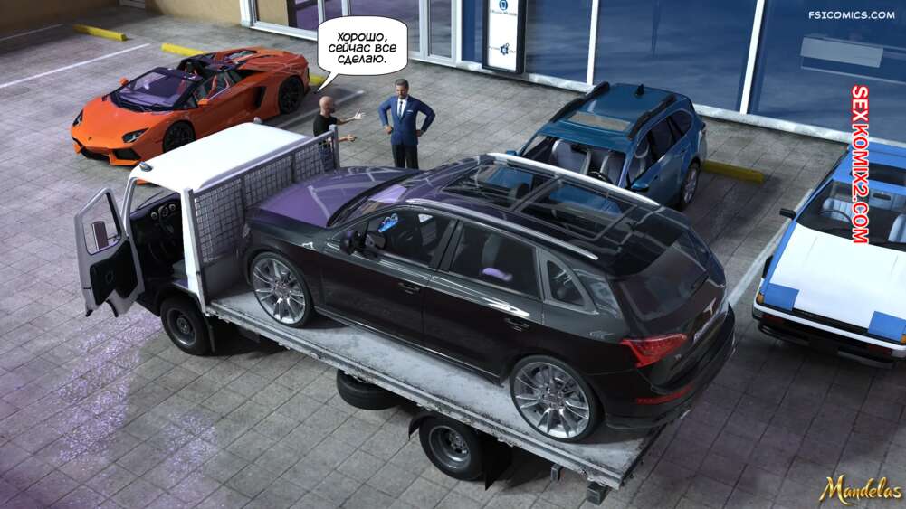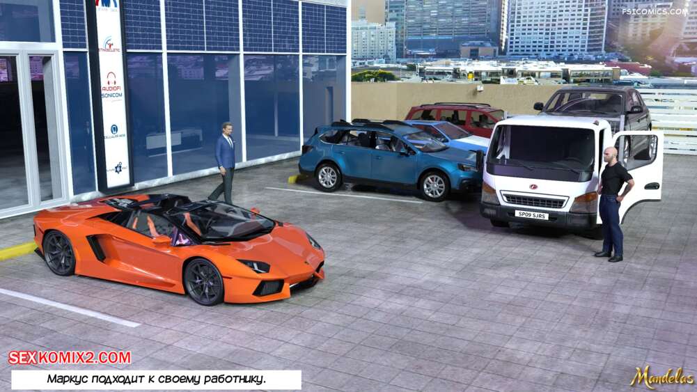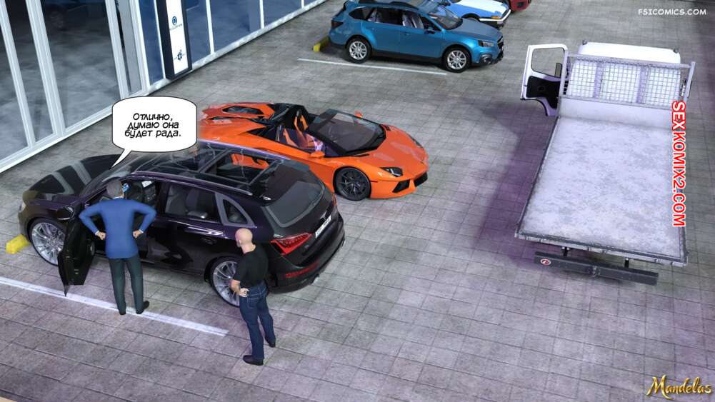 Порно комикс Приключения Гейл. Часть 14. The Adventures of Gail. Mandelas Маркус решил сделать особый подарок для Гейл и купил ей машину. Красотка рада такому сюрпризу и отправляется с мужиком на верхний этаж, чтобы трахнуться.