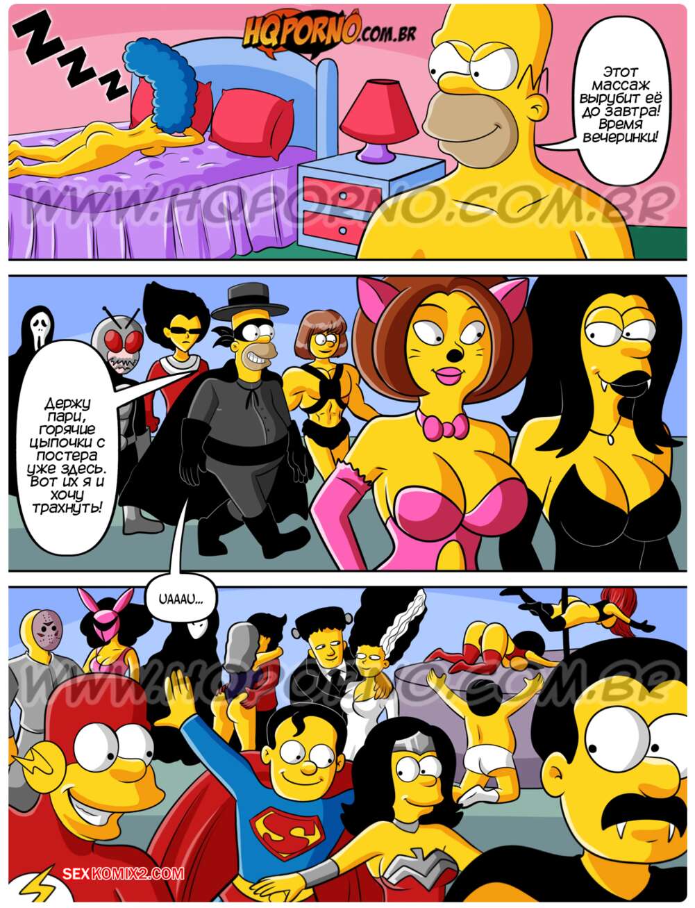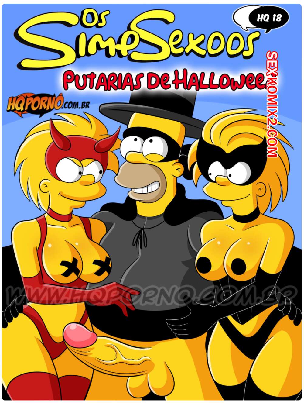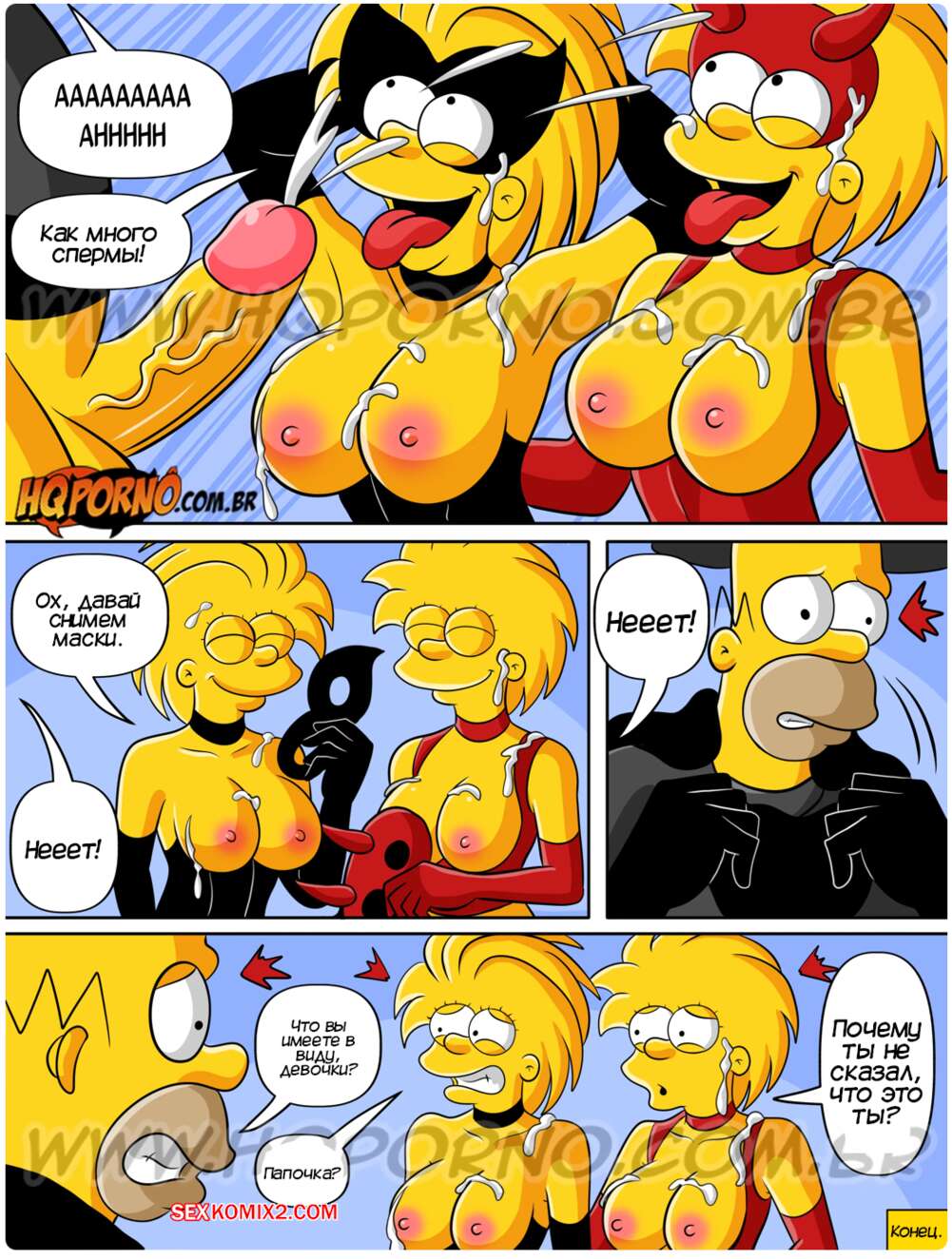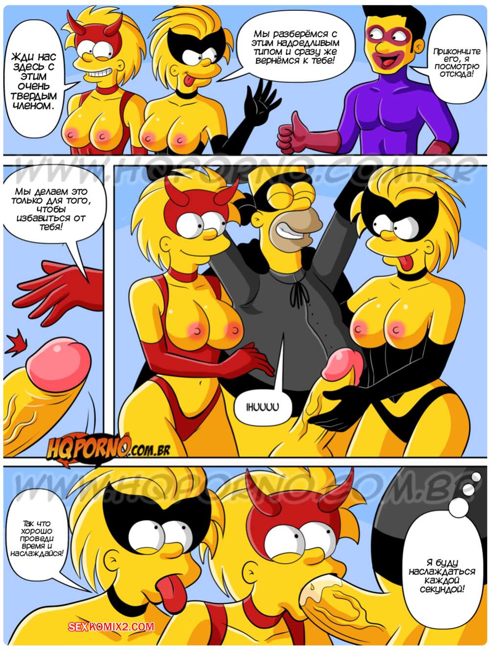 Порно комикс Симпсексы. Часть 24. Os Simpsexys. HQPorno Гомер увидел плакат о вечеринке в честь Хэллоуина и решил отправиться туда, увидев двух горячих красоток. Прийдя на тусовку, он добился встречи с девушками, желая их отъебать.