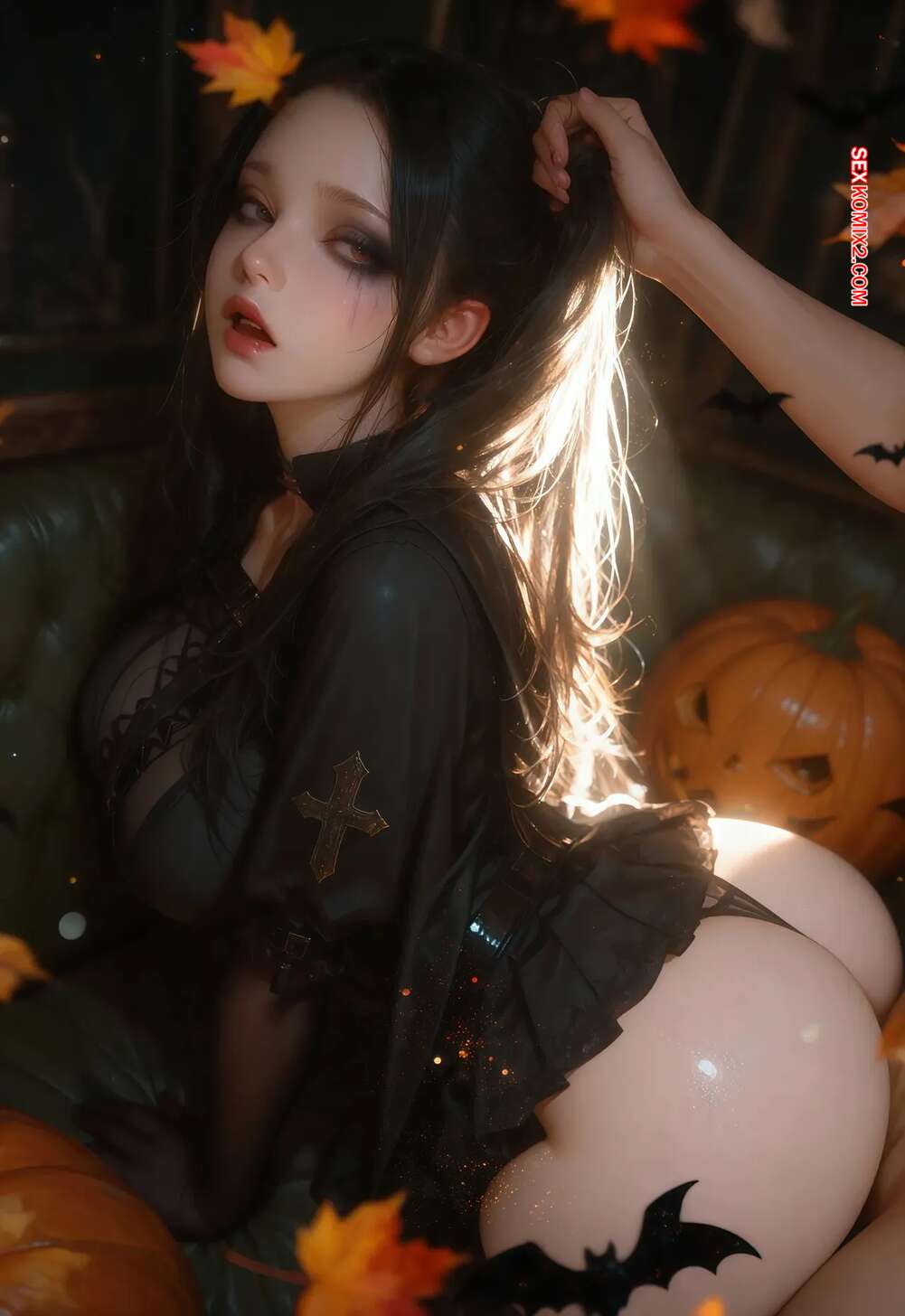 Порно комикс JA028. Happy Halloween. Jessie AI Горячая брюнетка с шикарным телом позирует перед парнем и соблазняет его. Она встала на колени и глубоко заглотила хуй своего дружка, после чего дала ему себя выебать.