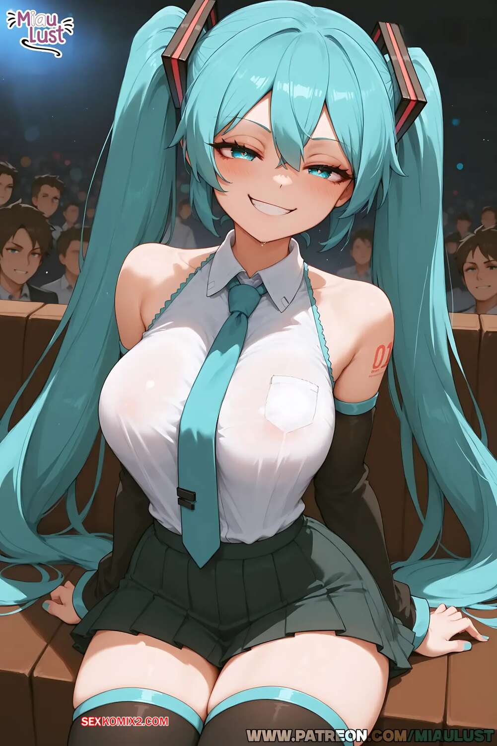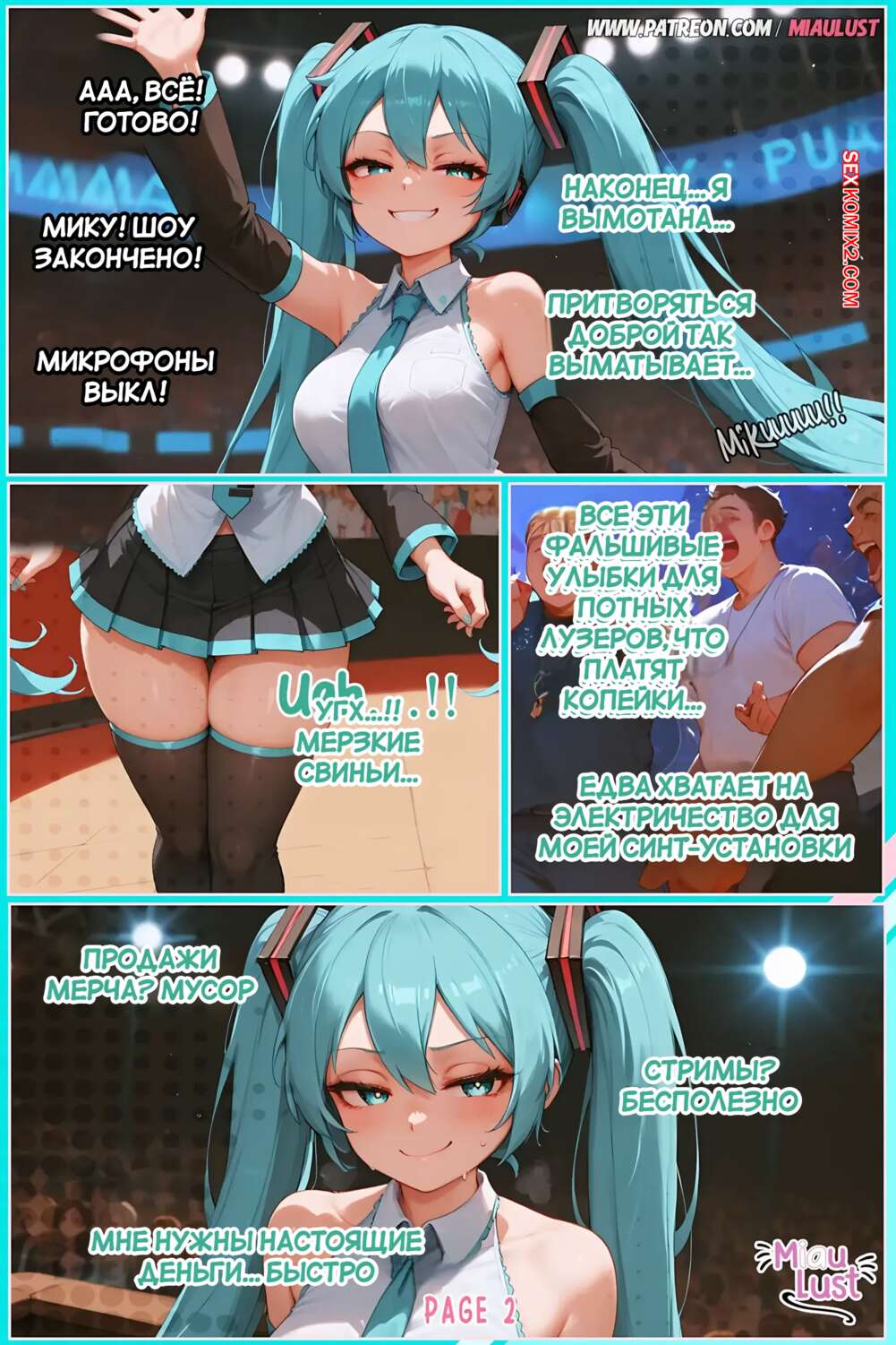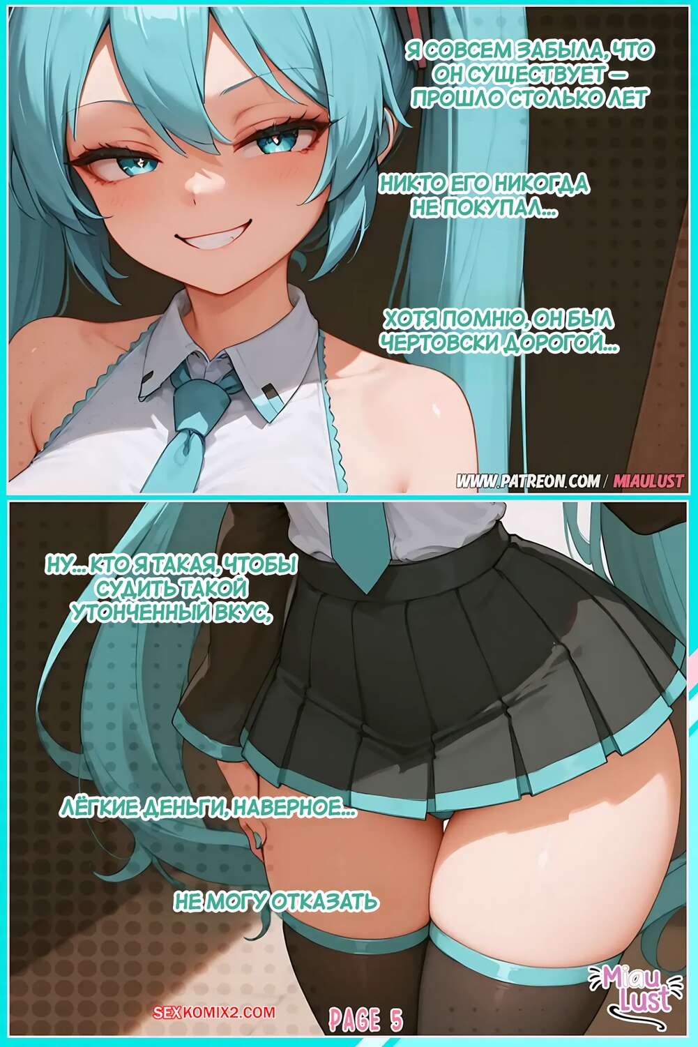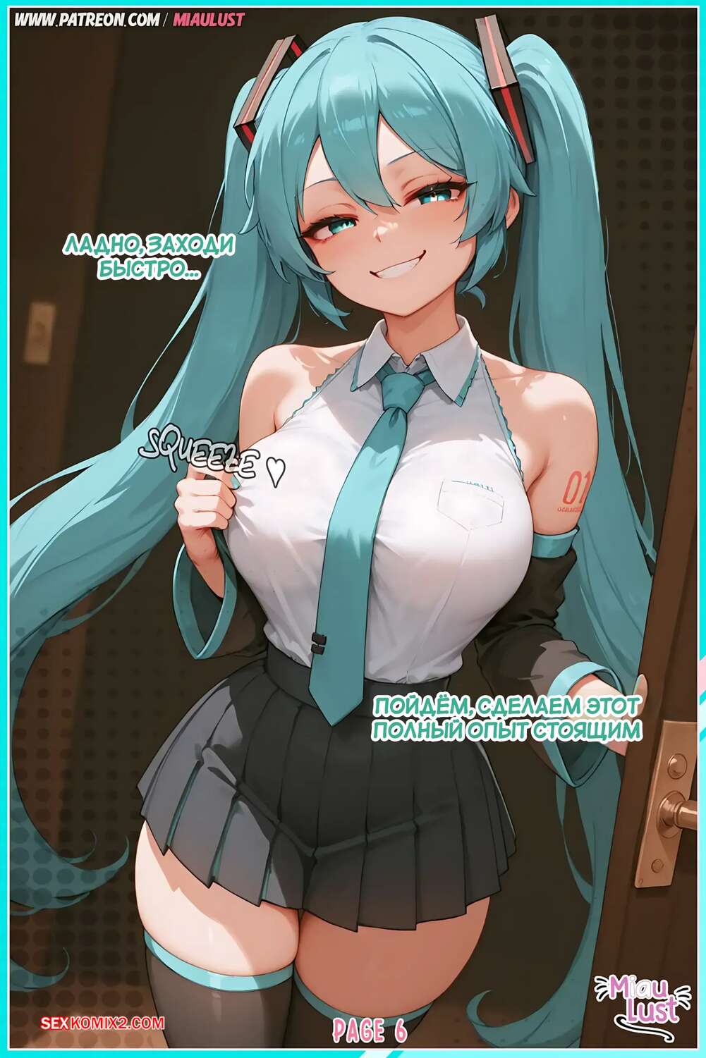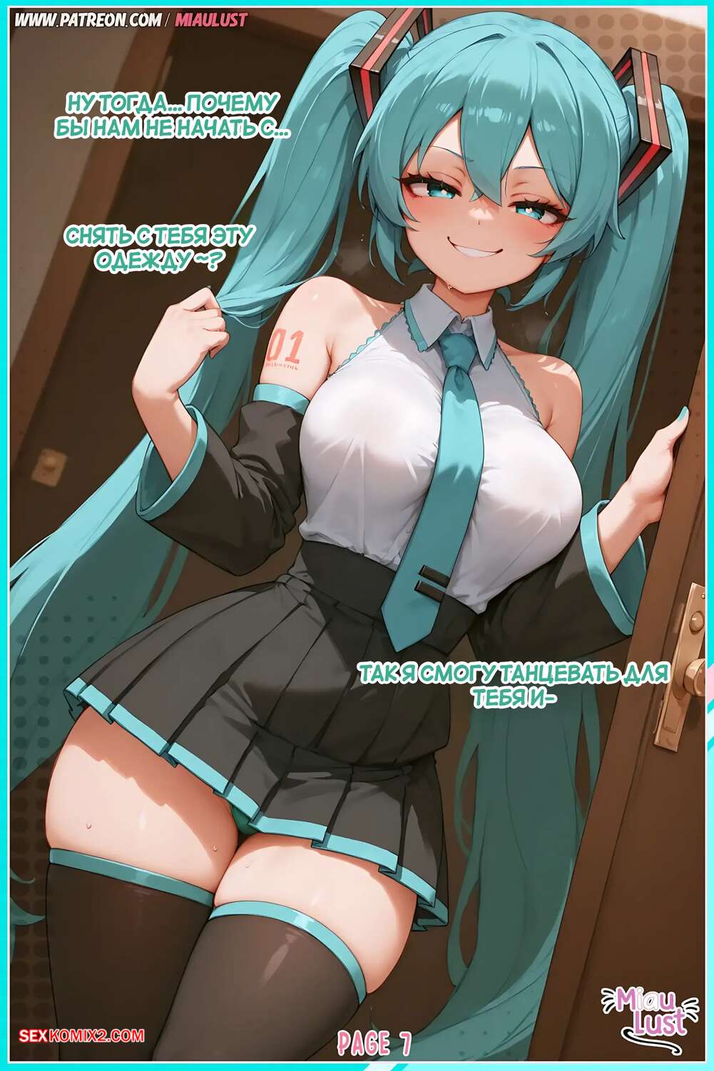 Порно комикс Vocaloid. Только випы. Miku Hatsune. MiauLust. Аппетитная красотка решила устроить особое шоу для своего вип клиента. Она трется о него своей сочной попкой, после чего садится на хуец парня и дает ему насладиться влажной дырочкой.