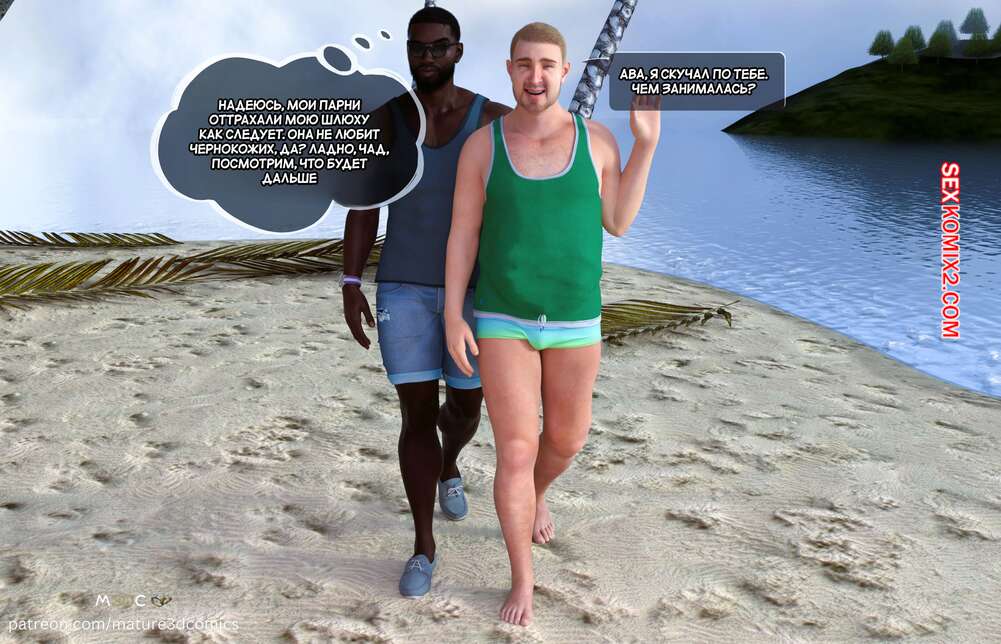 Порно комикс Грязный сосед. Часть 8. Naughty Neighbor. Mature3DComics Милфа с мужем приехали на Ямайку, где красотка сразу пошла на пляж в компании двух темнокожих парней. Они сняли с сучки купальник и дали отсосать свои члены, после чего хорошенько ее трахнули.