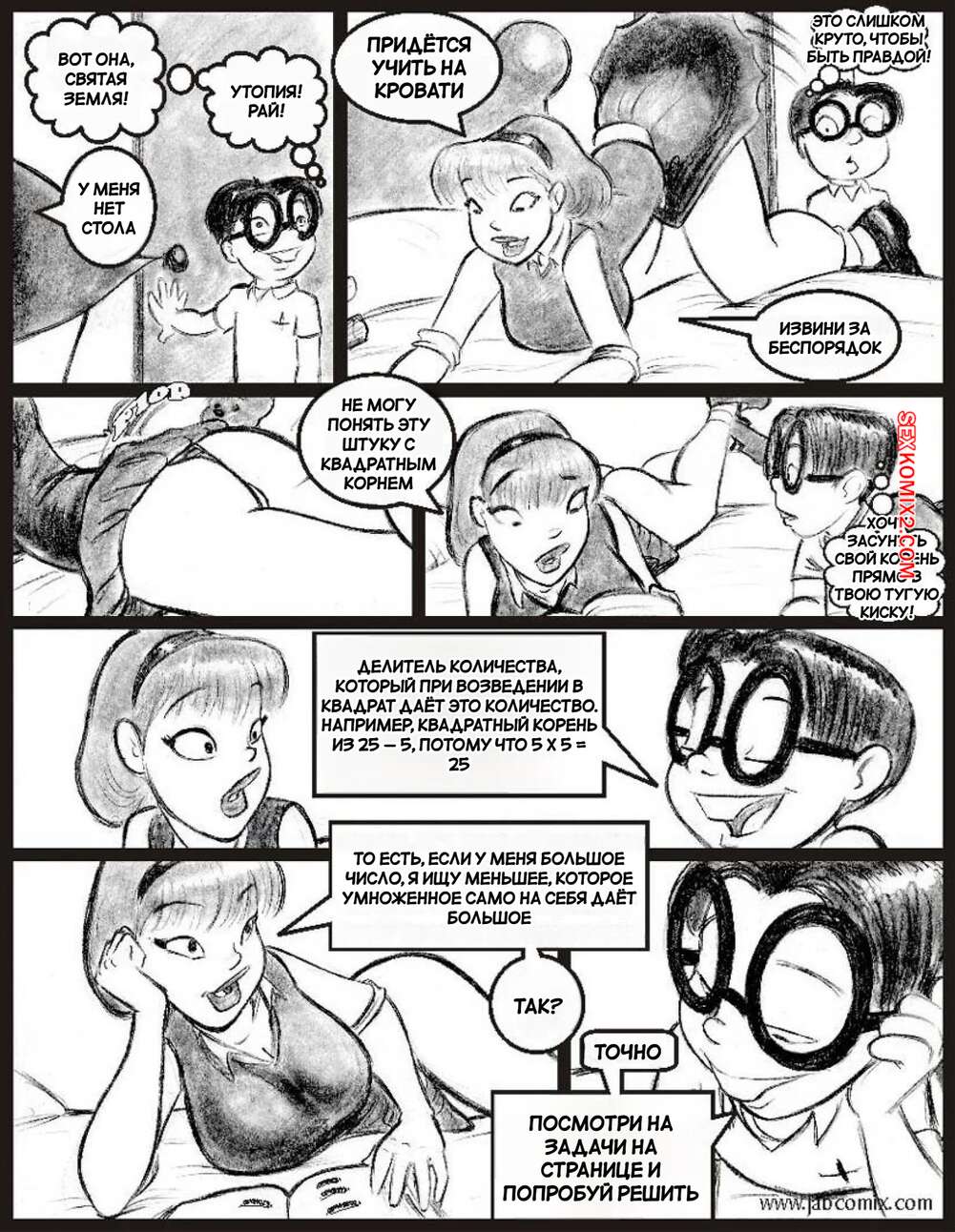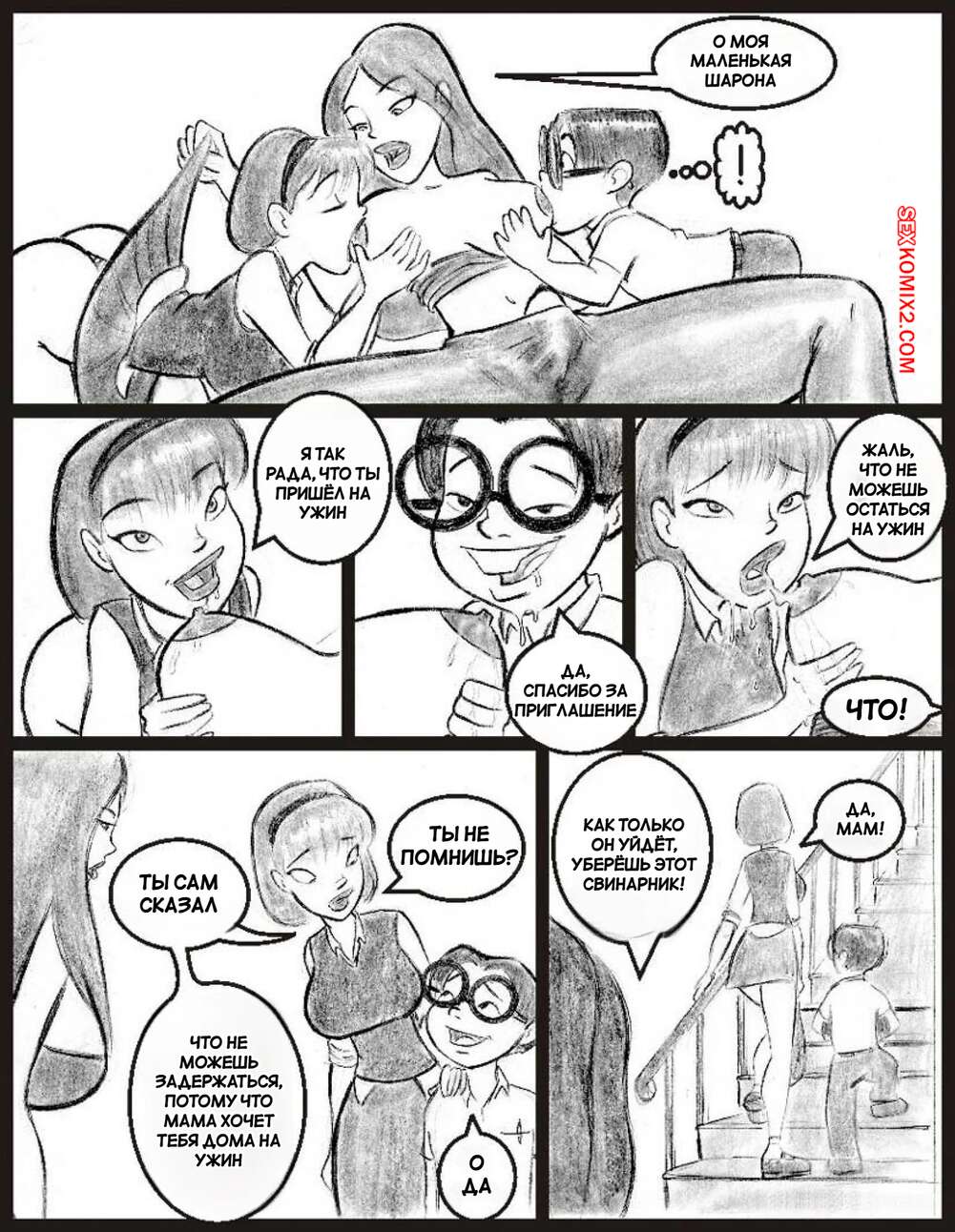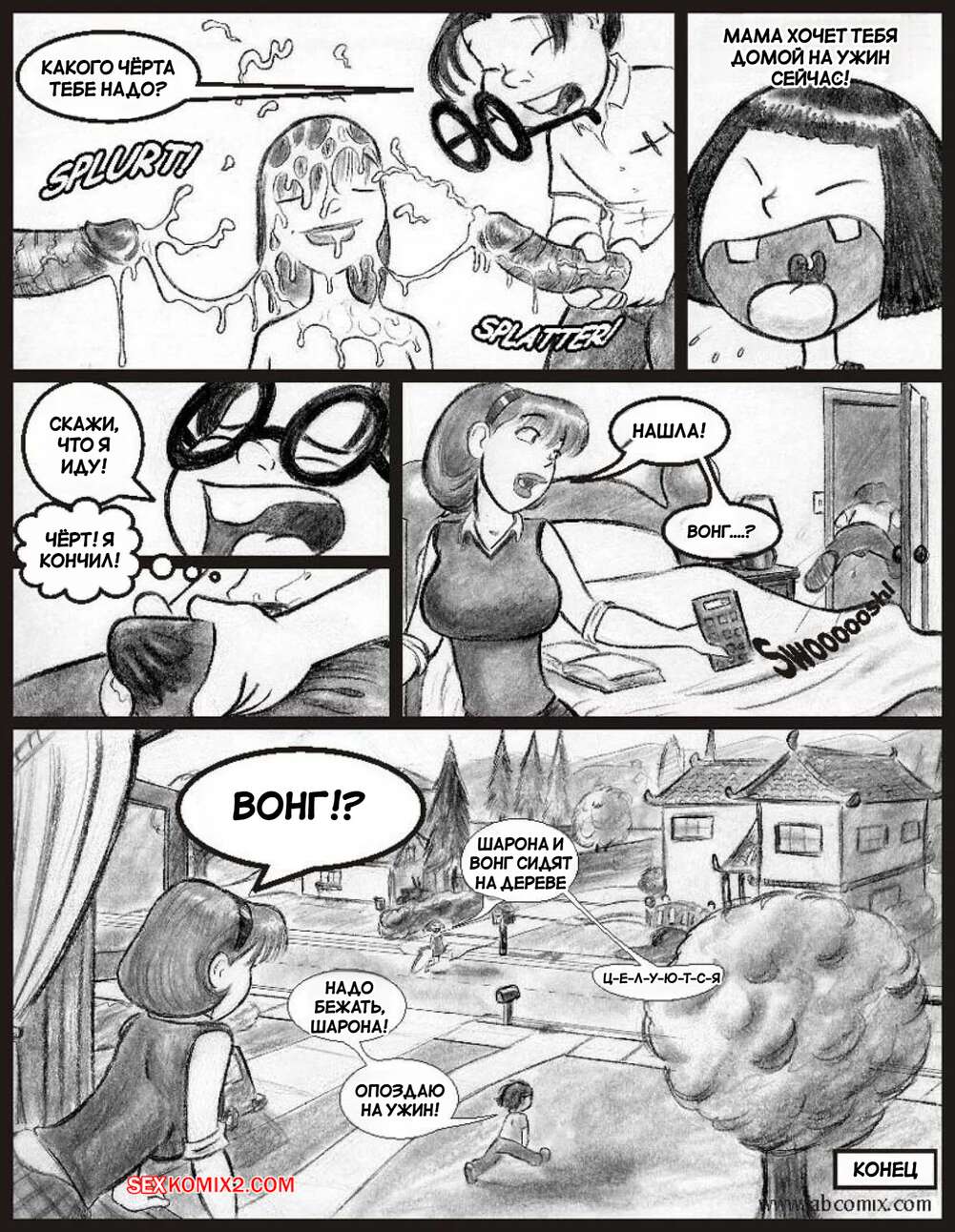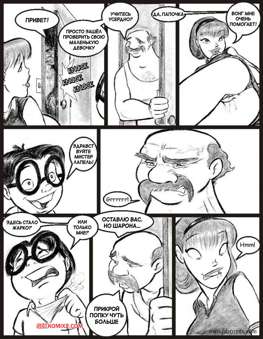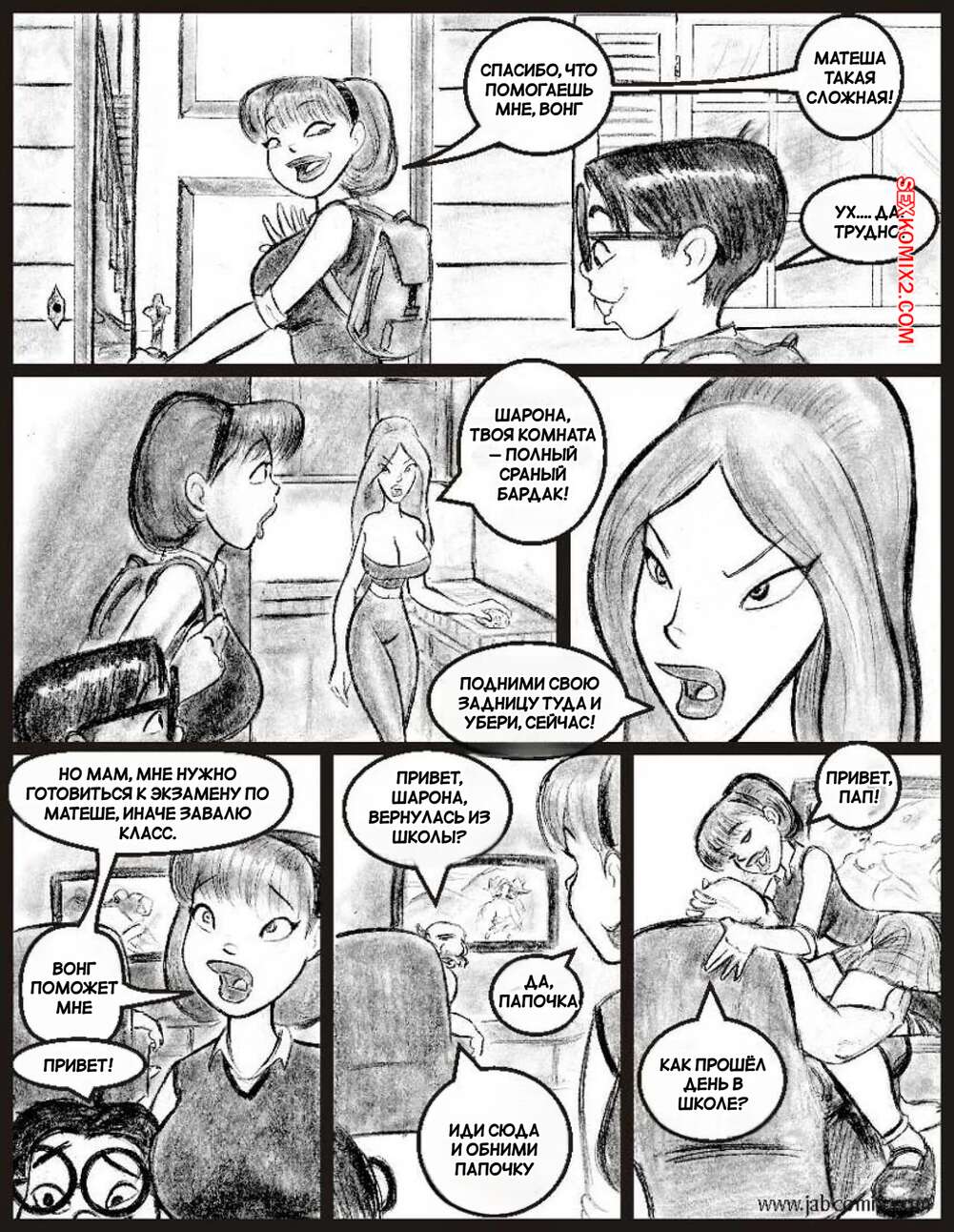 Порно комикс Моя горячая соседка. Часть 2. My Hot Ass Neighbor. JABComix Шарона пригласила Вонга к себе домой, чтобы заняться учебой. Парень знакомится с ее горячей мамой милфой и начинает строить в своей голове фантазии, с Шароной и ее мамой.