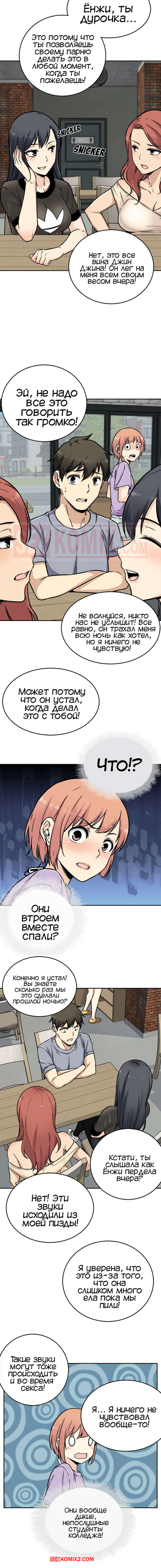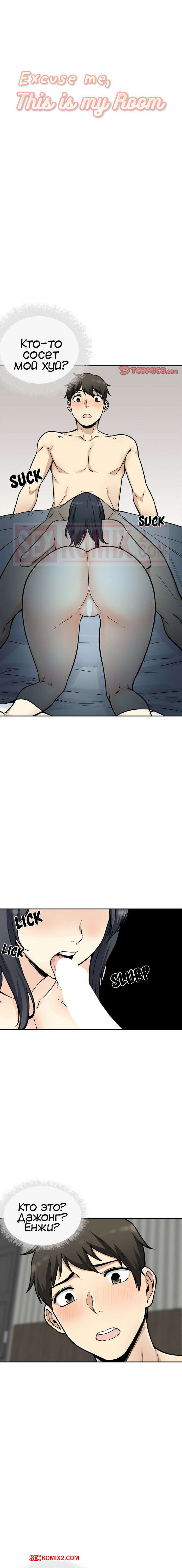 Порно комикс Извини, это моя комната. Часть 52. The Ark Is Me. После жаркого секса втроем парень сладко уснул. Утром он проснулся от того, что кто-то сосет его член. Но он не знает кто этой из-за одеяла.