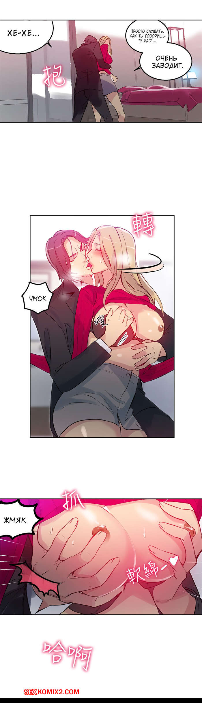 Порно комикс Богиня интернет кафе. Часть 43. Парень подцепил красивую блондинку и потащил её в свой номер люкс. Он так возбудилась, что начали прелюдии уже в лифте это создало неловкую ситуацию.