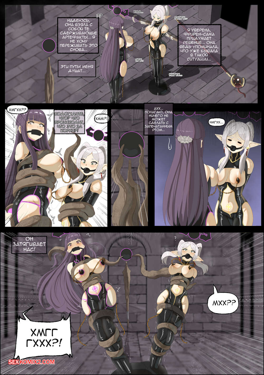 Порно комикс Sousou No Frieren. Плохой конец. Фрирен и Ферн. Bad End. Frieren and Fern. Bagelbomb Две горячие красотки схвачены и оказались обтянуты латексом. У них в попках и заднице находятся дилдо, от чего девушки испытывают невероятные удовольствия, но ничего не могут поделать.