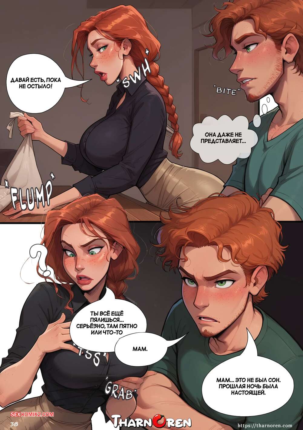 Порно комикс Секретная терапия мамы. Moms Secret Therapy. Tharnoren. Горячая милфа любит секс с парнями помоложе. Она нашла отличный вариант и дала своему новому дружку выебать пизденку, после чего проглотила всю его сперму из презика.
