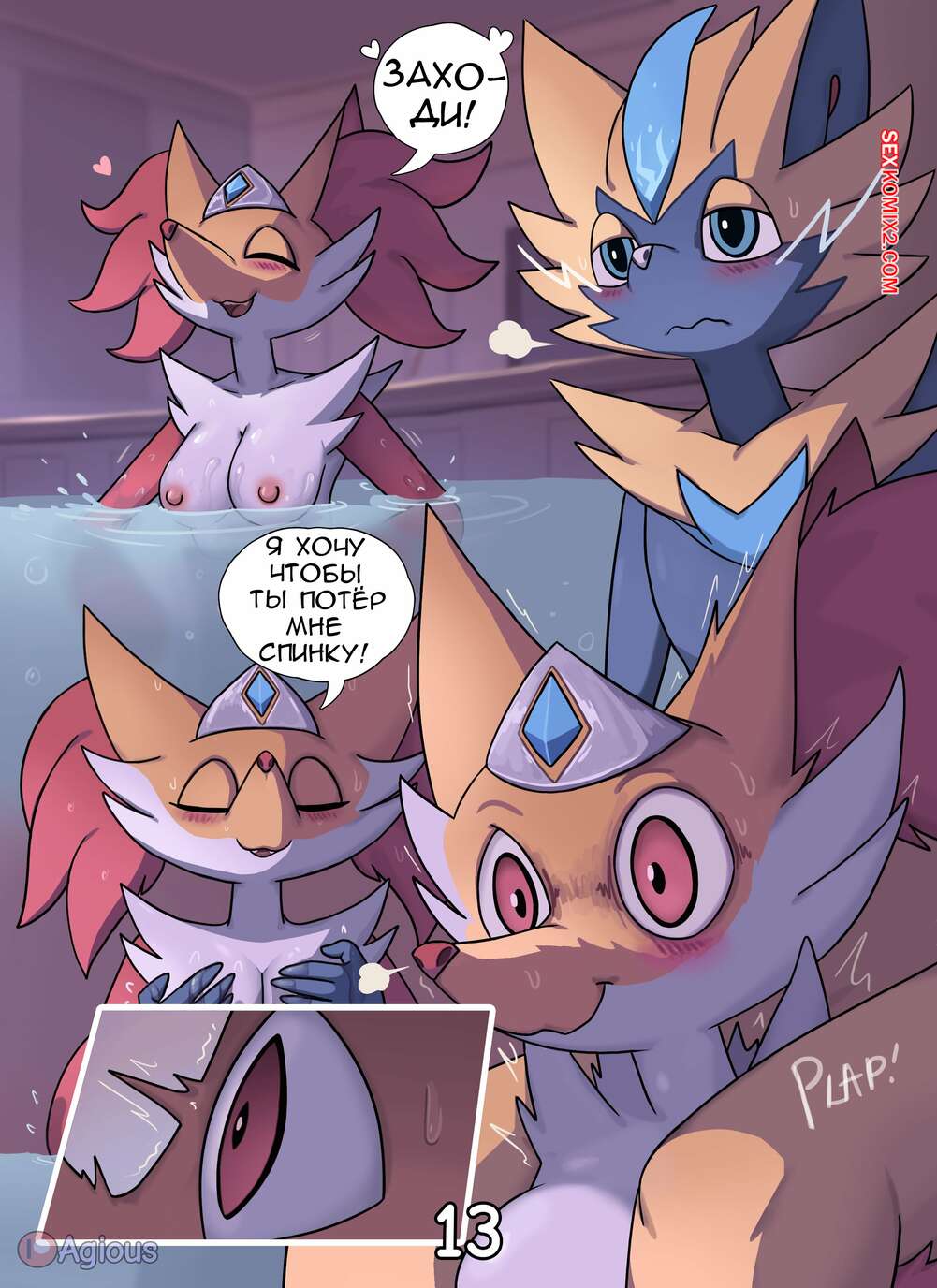 Порно комикс Pokemon. Приказ Императрицы. Empress Order. Agious Императрица фурри принимала ванну и вызвала к себе одного из подданых. Девушка приказала ему раздеться и стала у него отсасывать, после чего раздвинула ножки и дала себя выебать.