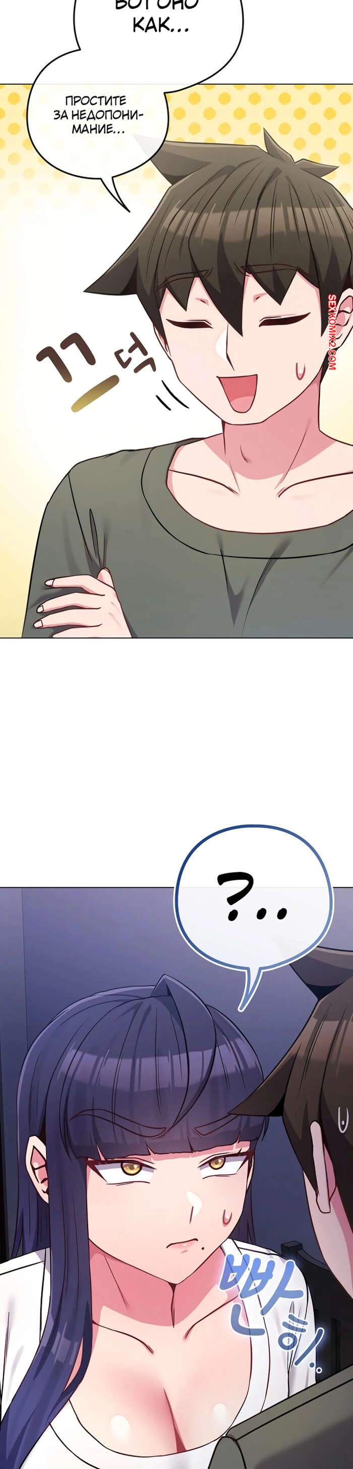 Порно комикс Моя дочь твоя ровесница. Часть 41 и 42 и 43. ttal i neolang dong gab inde После ебли с блондиночкой, парень уснул, а на утро за девушкой пришла брюнетка. Парень почувствовал сильную неловкость, но все таки постарался вести себя как будто ничего не случилось.
