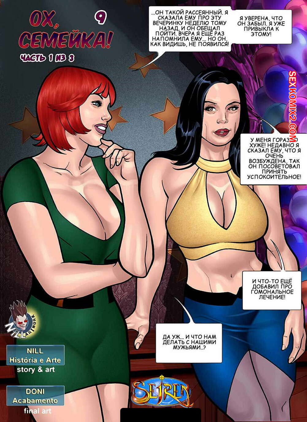 Порно комикс Ох, семейка. Часть 9. Эпизоды 1 и 2 и 3 Три милфы отправились на вечеринку где к ним стали подкатывать накаченные парни в необычных облегающих костюмах. Красотки не смогли устоять перед таким мужским вниманием и с радостью согласились поебаться с красавчиками, даже позволяя им ебать их в задницу.