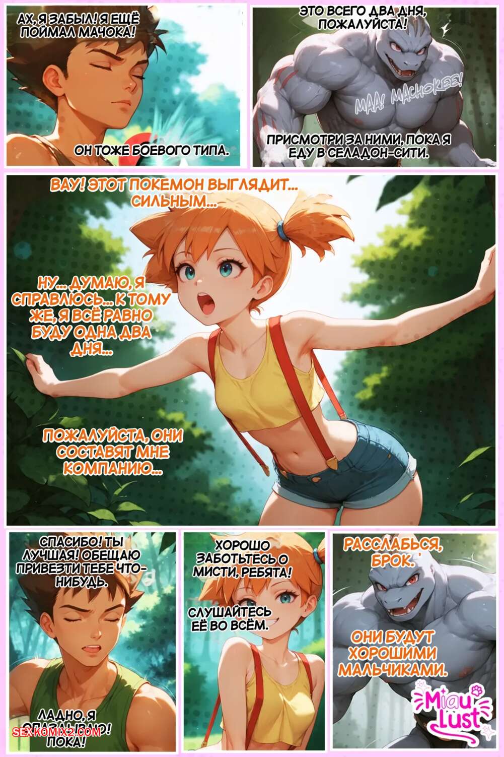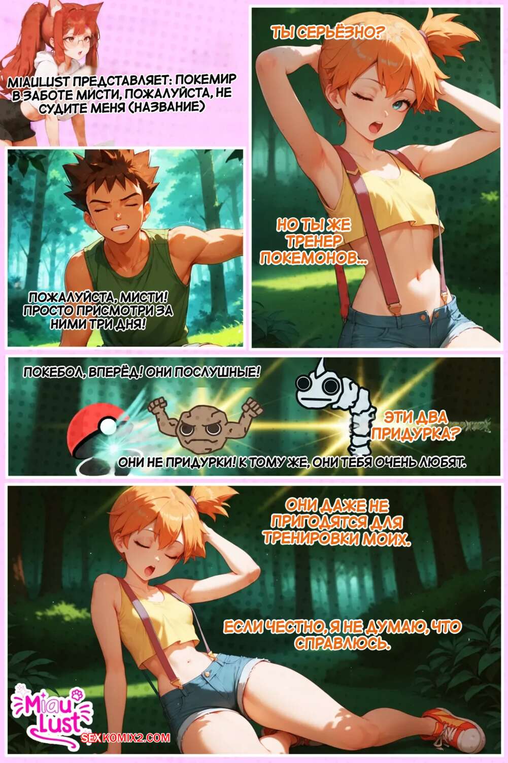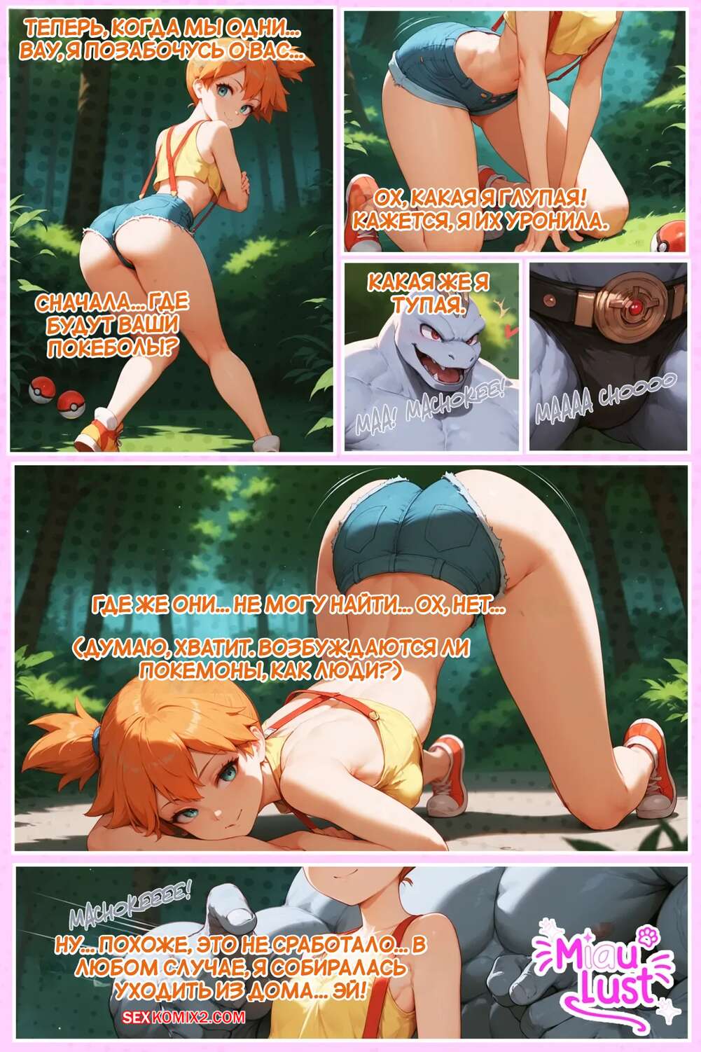 Порно комикс Pokemon. Мисти в уходе за Мисти. Misty in Mistys Care. MiauLust. Покемон не может устоять перед шикарным телом красотки Мисти. Он раздел девушку и стал лизать ее влажную пизденку, после чего вставил в нее свой член и хорошенько выебал.