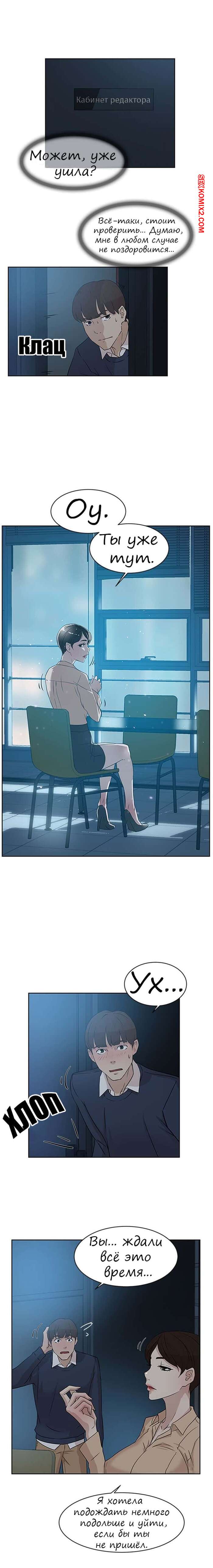Порно комикс Её 4 размер. Части 31 и 32 и 33. Наш герой отправился со своей красоткой подругой в кафе, а затем они оказались на кровати. Но его срочно вызвала редакторша к себе и ему пришлось оставить ее одну и уйти. Редакторша пожелала, чтобы он ее хорошенько отъебал и сразу заставила его лизать ее пизду.
