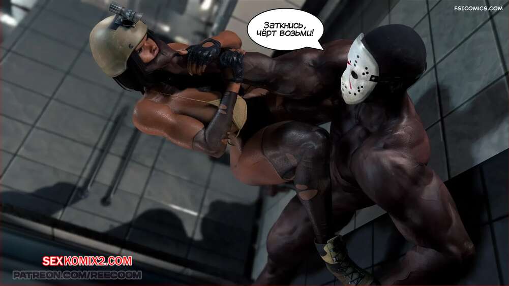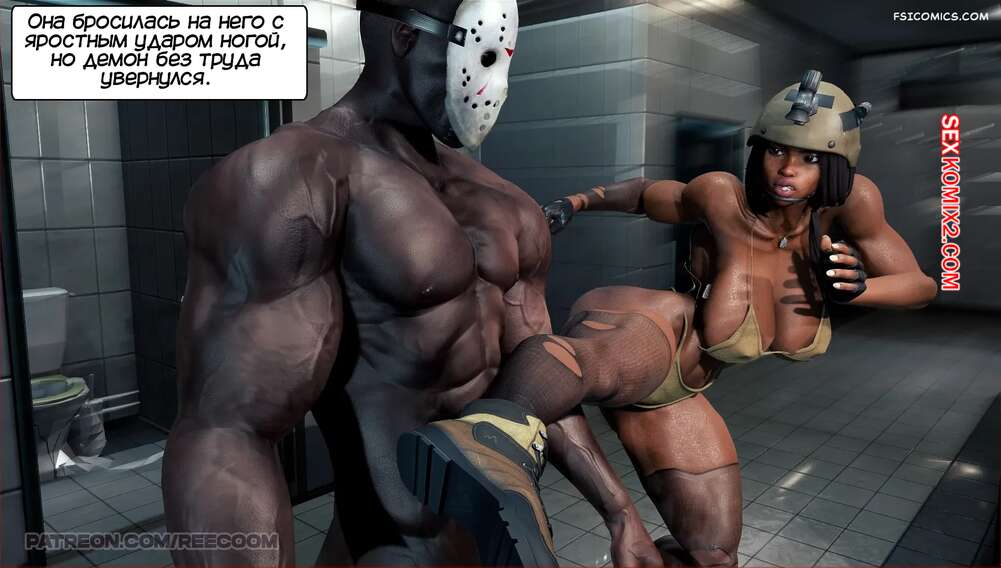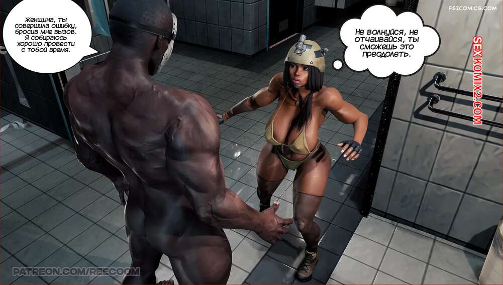 Порно комикс Женщина солдат захвачена в плен. Female Soldier Captured. Reecoom Горячая брюнетка вступила в схватку с темнокожим парнем, но он оказался гораздо сильнее. Он сорвал одежду с девушки и сунул ей член в рот, после чего хорошенько ее выебал.