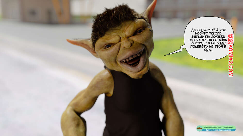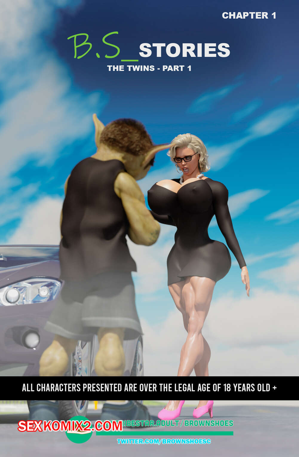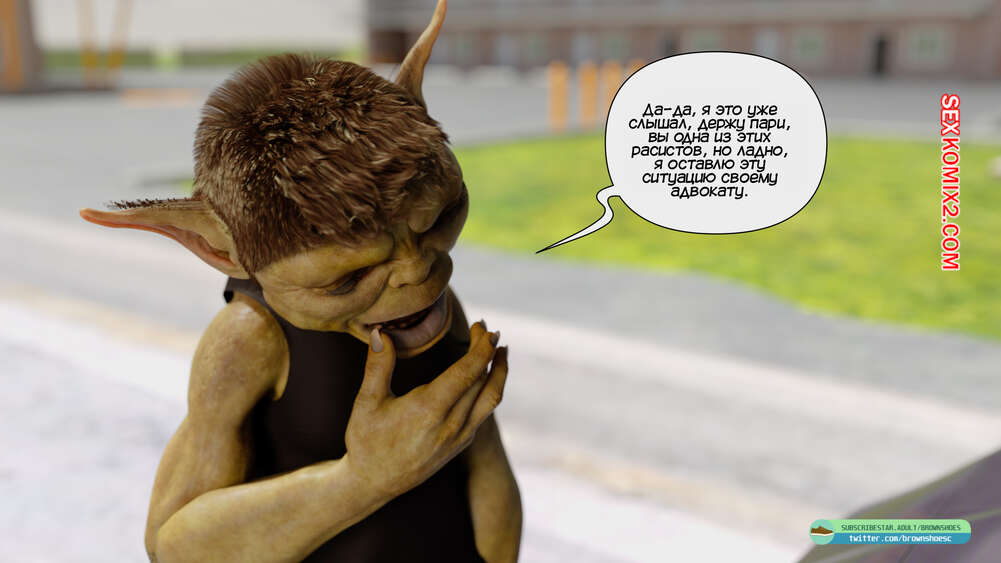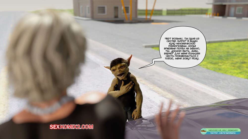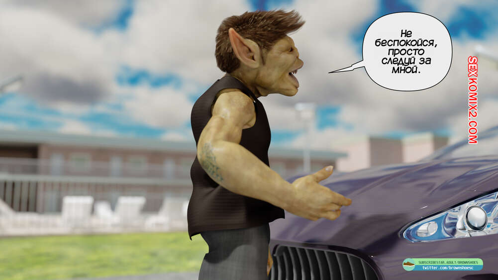 Порно комикс Рассказы Б.С. Часть 1. B.S Stories. Brown Shoes Горячая милфа сбила на машине гоблина и он узнал в ней популярную порно актрису. Он предложил ей избежать иска, если сучка возьмет в рот его огромный член, но все зашло гораздо дальше.
