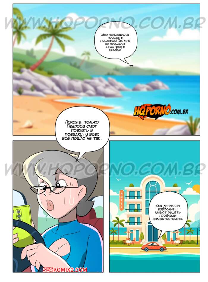 Порно комикс Мамуска, возбужденная свекровь. Часть 9. HQPorno Горячая милфа Мамуска отправилась в отель на выходные и так получилось, что ей пришлось ночевать в одной постели с мужем своей дочери. Он возбудился от попки милфы и у него встал хуй, а она решила ему помочь и стала сосать его хуй.