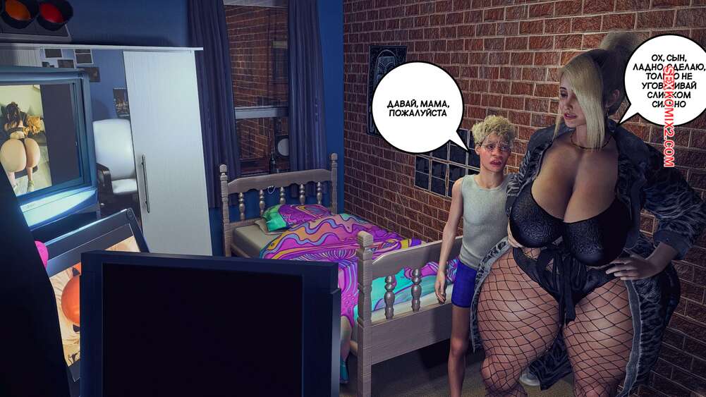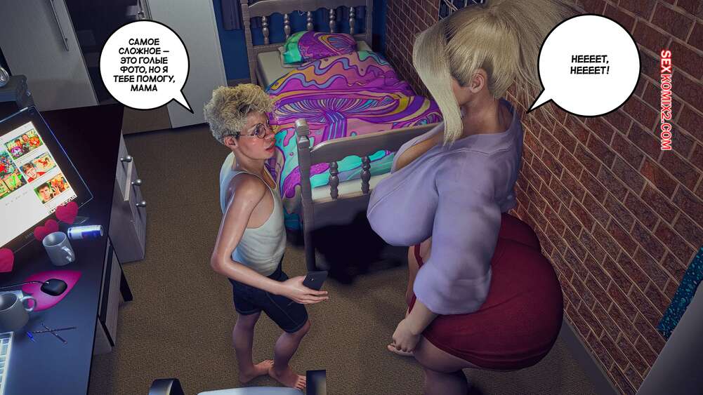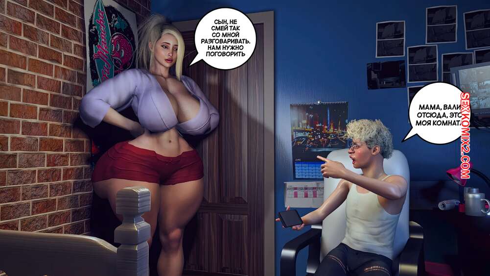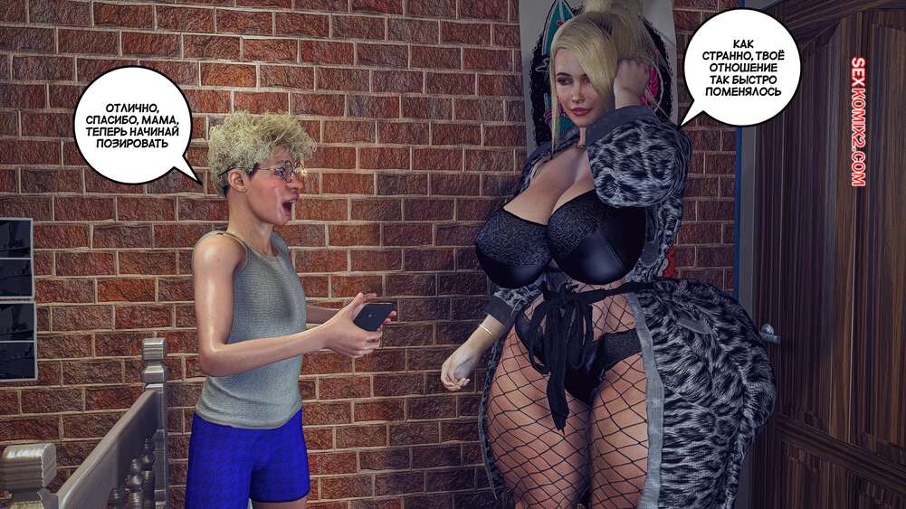Порно комикс Помогая маме. Часть 2. Helping to mom. Bartolito3d for sexkomix2.com У горячей милфы проблемы с деньгами и сын предлагает ей сделать эротическую съемку, чтобы получить на этом деньги. Красотка надела сексуальное белье и парень стал снимать мамочку в откровенных позах, от чего у него быстро встал хуй.