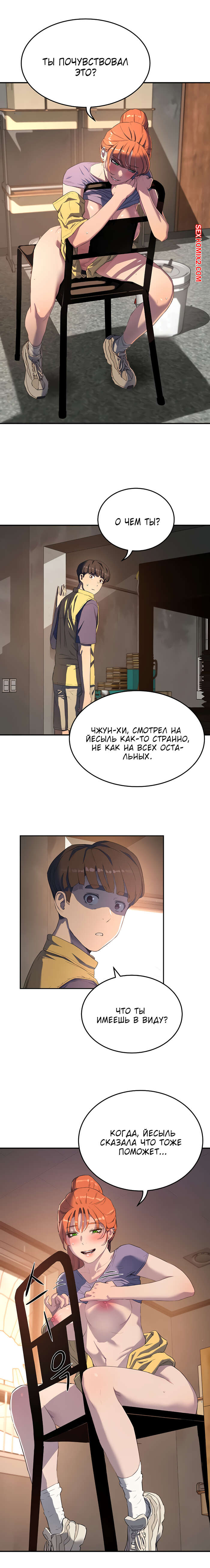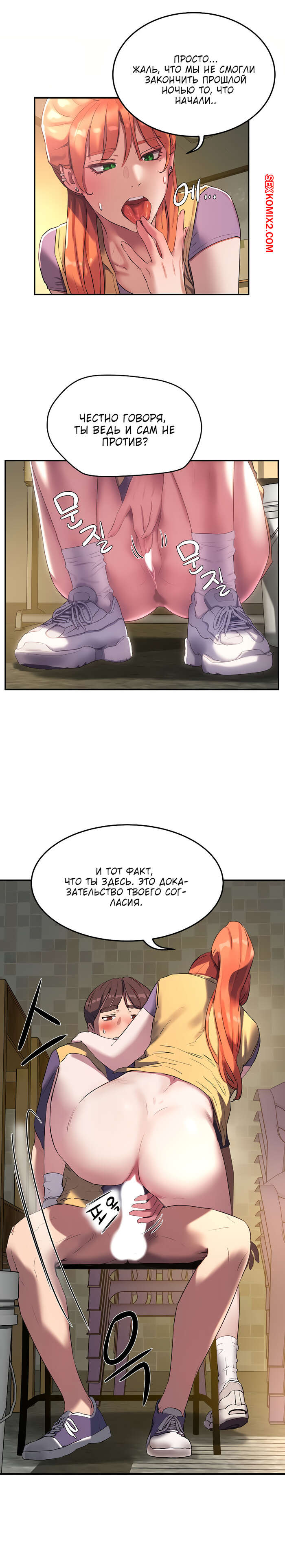 Порно комикс Летняя пора. Части 5 и 6. Summer time Парнишке и его рыжей подруге так не терпелось потрахаться, поэтому они прямо в школе решили уединиться. Там красотка усадила парня на стул и раздевшись, сверху оседлала его хуй, чтобы он ее хорошенько выебал.
