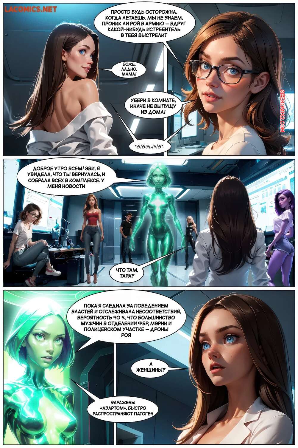 Порно комикс Генезис. Часть 7. G3nysis. G3nysis Парень с девушкой остались наедине и решили воспользоваться моментом по полной. Они стали страстно целоваться, но их уединение нарушил сигнал о чрезвычайной ситуации.