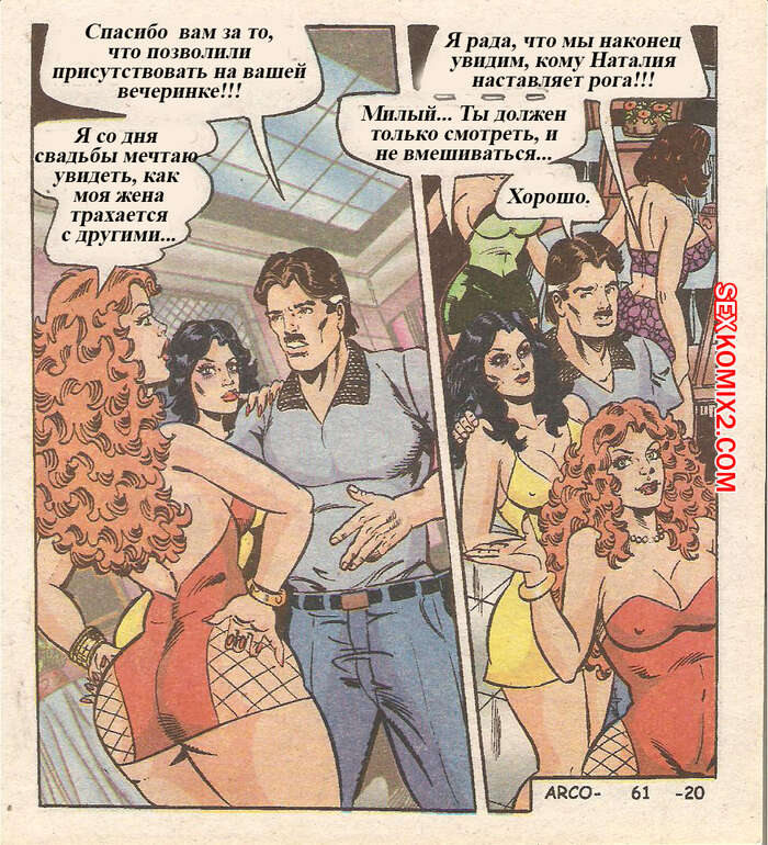 Порно комикс Ретро. Желание увидеть всё своими глазами Милфа рассказывает своему мужу о том, как сильно она любит ебаться с двумя парнями сразу, а он кайфует от этого. Ему теперь захотелось увидеть все это вживую и на тусовке, пока его красотку жену ебали два парня, он наслаждался зрелищем, подрачивая свой хуй.