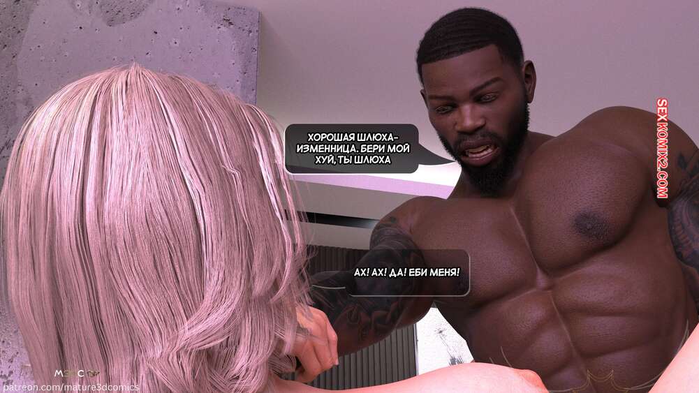 Порно комикс Грязный сосед. Часть 34. Naughty Neighbor. Mature3DComics Темнокожий парень отправился домой к горячей милфе, желая с ней пошалить. Он уложил красотку на стол в гостинной и стал трахать ее пизду, заполняя своей горячей спермой.