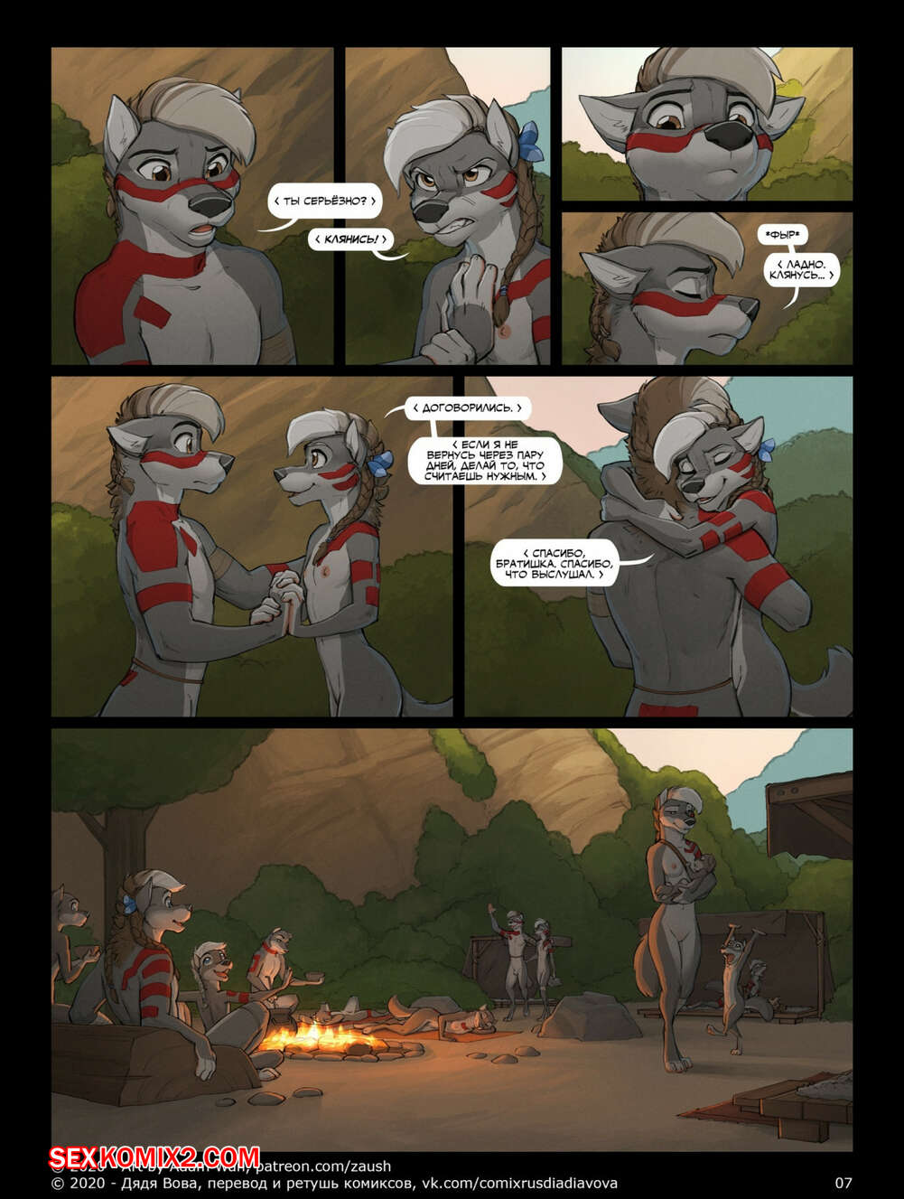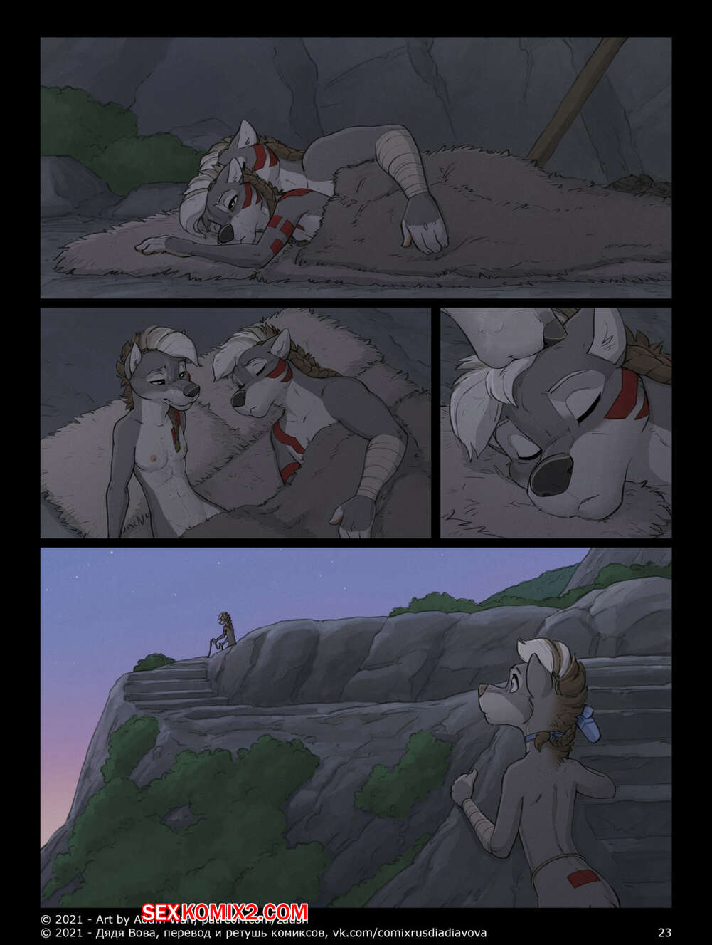 Порно комикс Фурри. Сделка с Тантой. Tantas Bargain Ночью во время перевала парнишка решил подкатить свои яйца к подруге. Подкравшись к ней сзади, он стал ее нежно обнимать и целовать, так что она не смогла устоять перед его обаянием и была не против поебаться, все равно их никто бы не увидел.