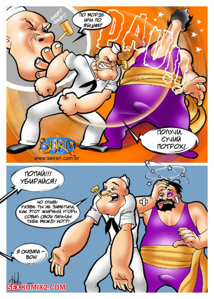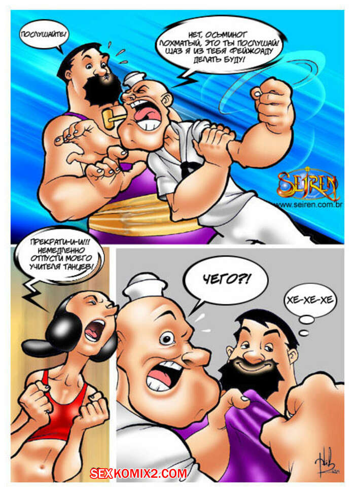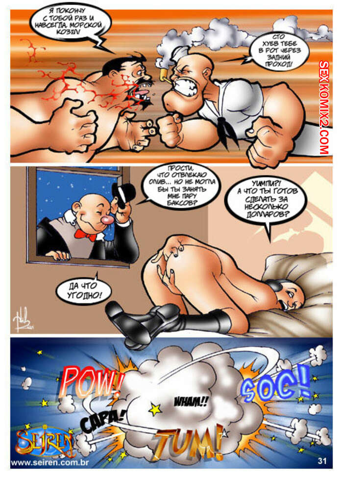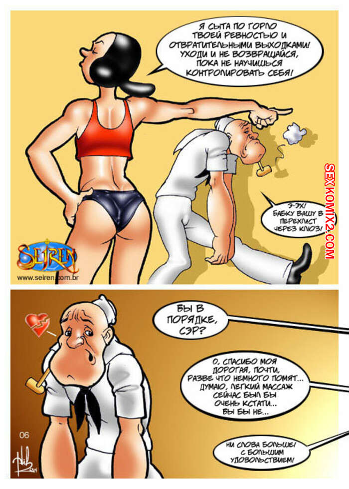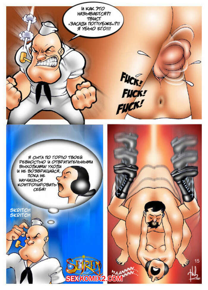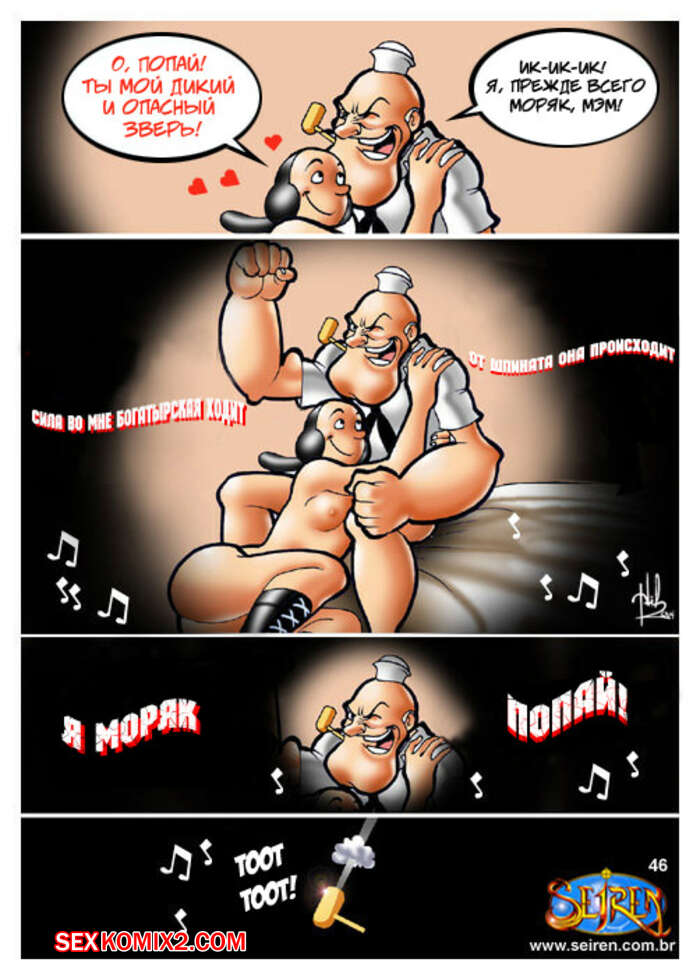 Порно комикс Моряк Попай. Popeye the Sailor Моряк вернулся домой к своей жене, но спалил ее голой, ебущейся с каким то мужиком. Сучке было плевать на присутствие мужа, поэтому она спокойно продолжила наслаждаться огромным хуем любовника.