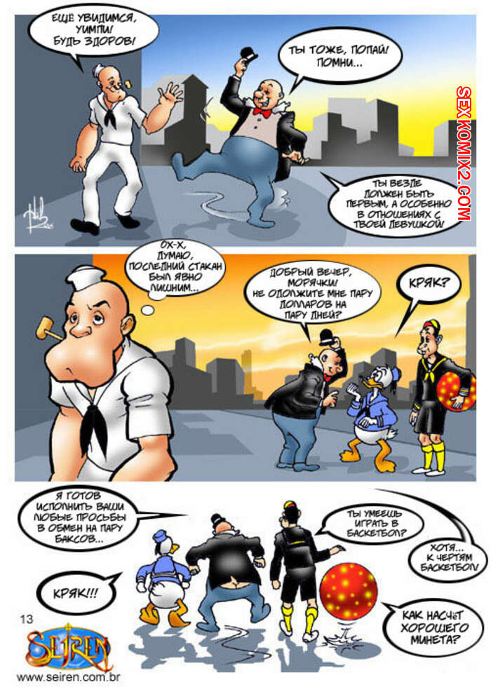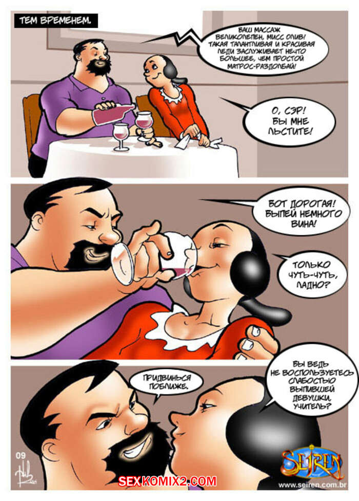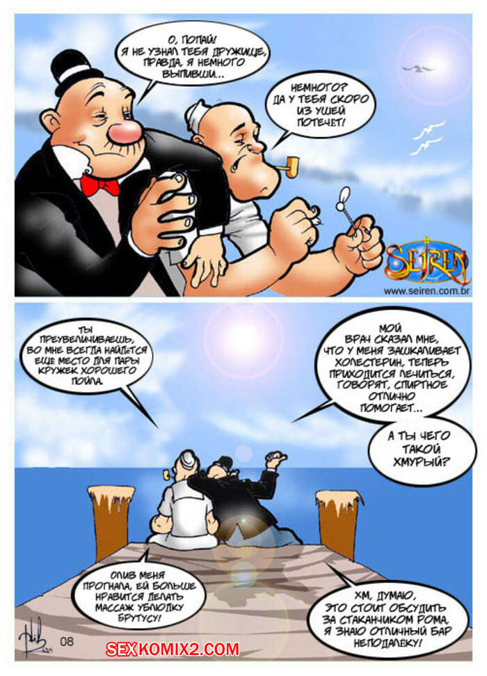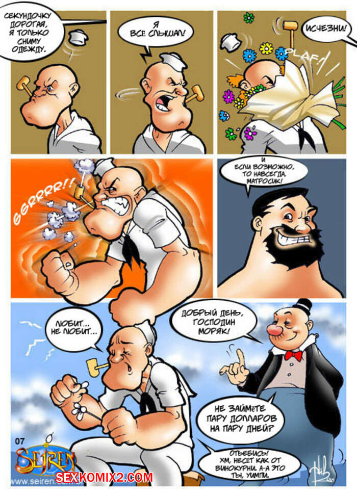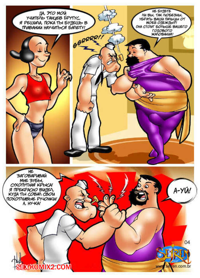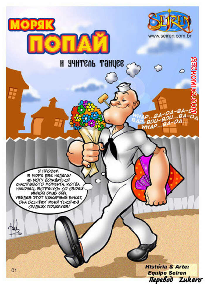 Порно комикс Моряк Попай. Popeye the Sailor Моряк вернулся домой к своей жене, но спалил ее голой, ебущейся с каким то мужиком. Сучке было плевать на присутствие мужа, поэтому она спокойно продолжила наслаждаться огромным хуем любовника.