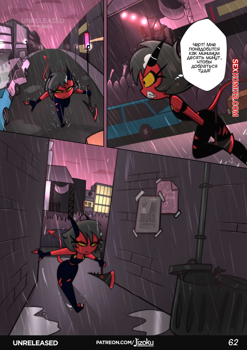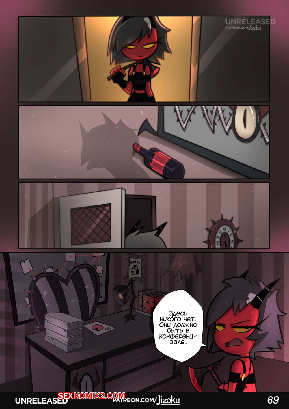 Порно комикс Ночь с Луной. Helluva Boss A Night With Loona. Jizoku. Луна напилась на работе и ее коллега помог ей добраться до дома. Она узнала, что его жена никогда не занимается с ним сексом и оказалась в шоке, так как думала, что они постоянно трахаются.