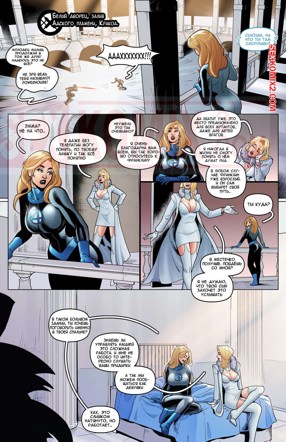 Порно комикс X-Men. Мороз и буря. House Of XXX. Frost and Storm. Tracy Scops. Девушки мутанты любят жестко трахаться, они устроили лесбийскую потеху, а потом пригласили Циклопа для продолжения.