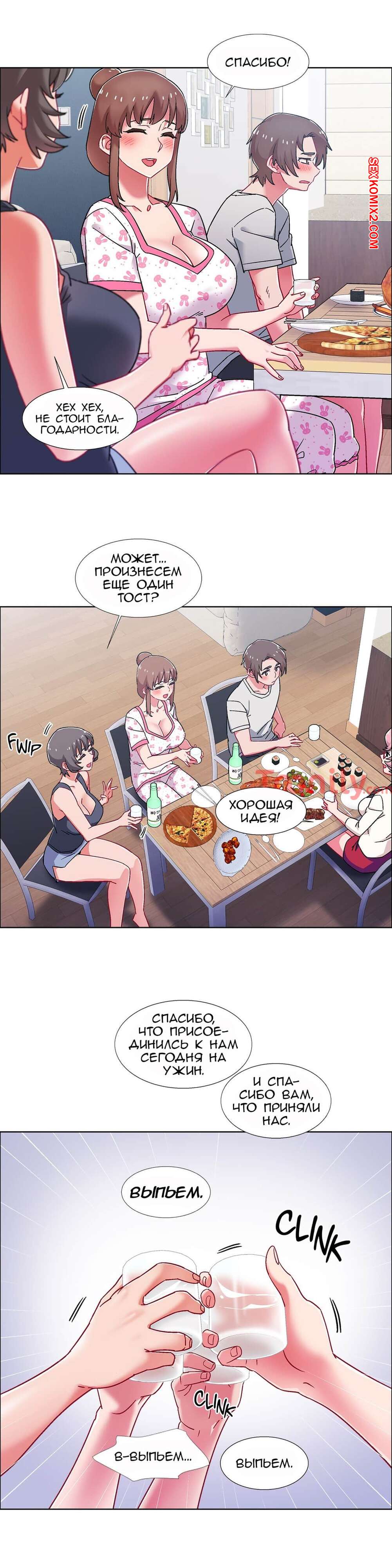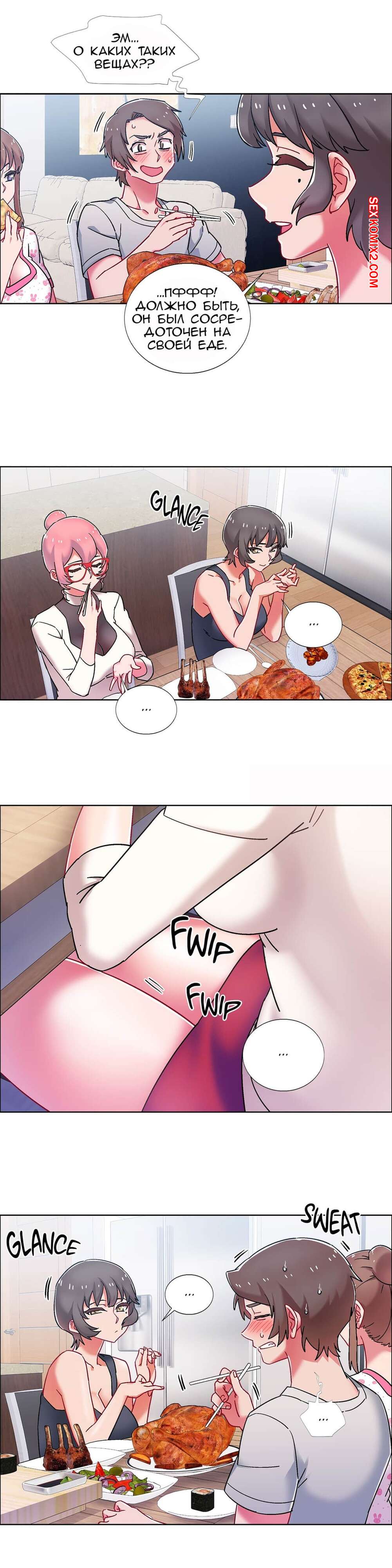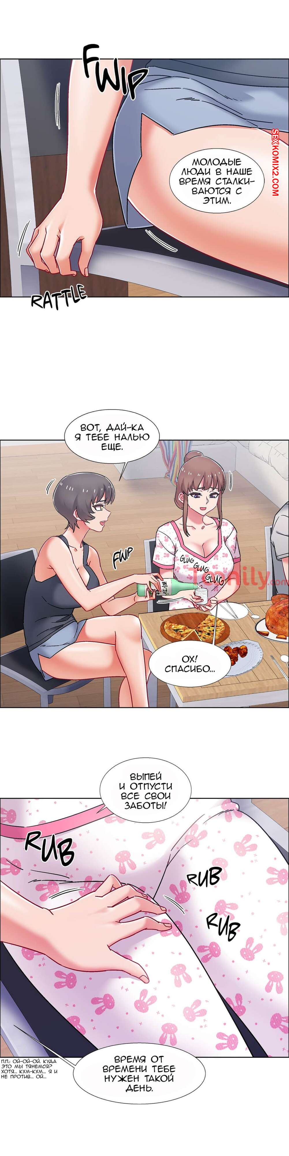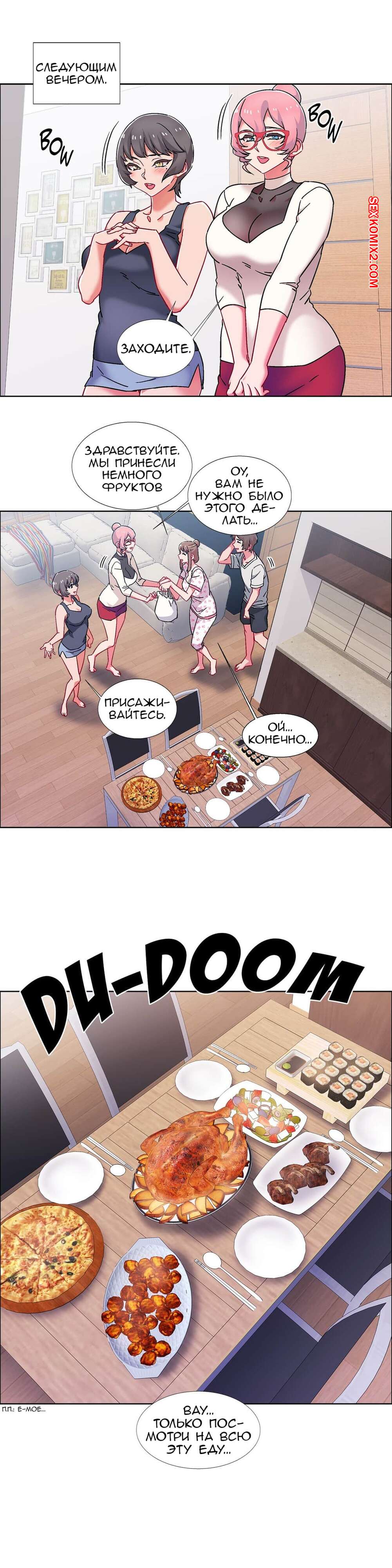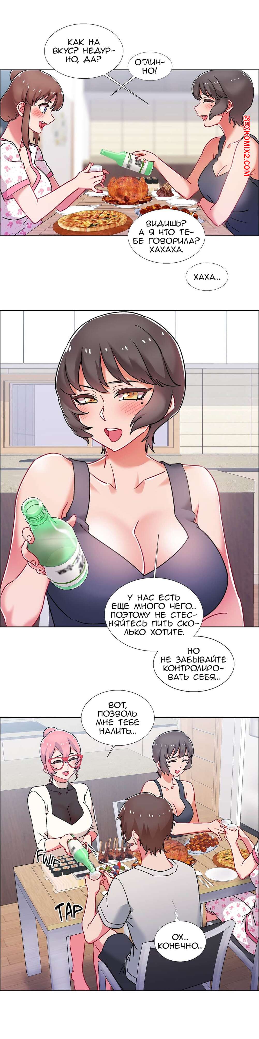Порно комикс Прокат девушек. Части 53 и 54 и 55. Rental Girls. Трое девушек и один парень устроили дома ужин. После пары бокалов вина, девушки возбудились и все вместе полезли на парня, чтобы заняться сексом. Отличное окончание хорошего вечера.