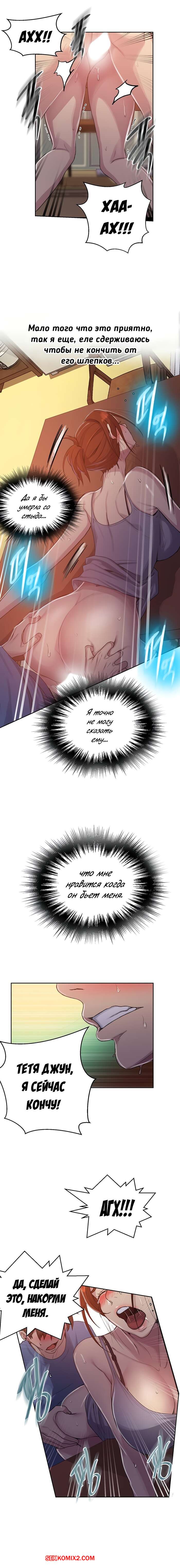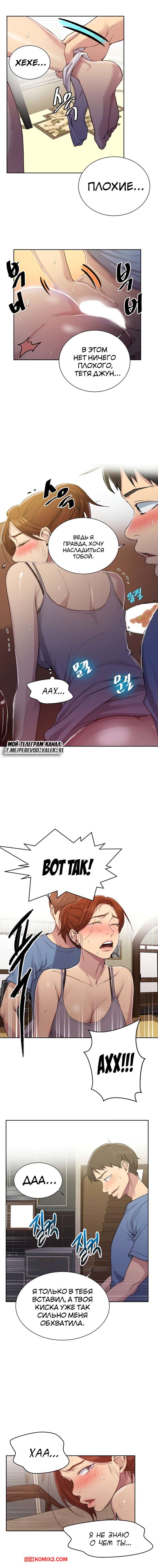 Порно комикс Тайное обучение. Часть 89. SecretClass. Нил продолжает жадно трахать свою тетю в дали от всех. Женщина извивается под его натиском и активным проникновением в ее недра.