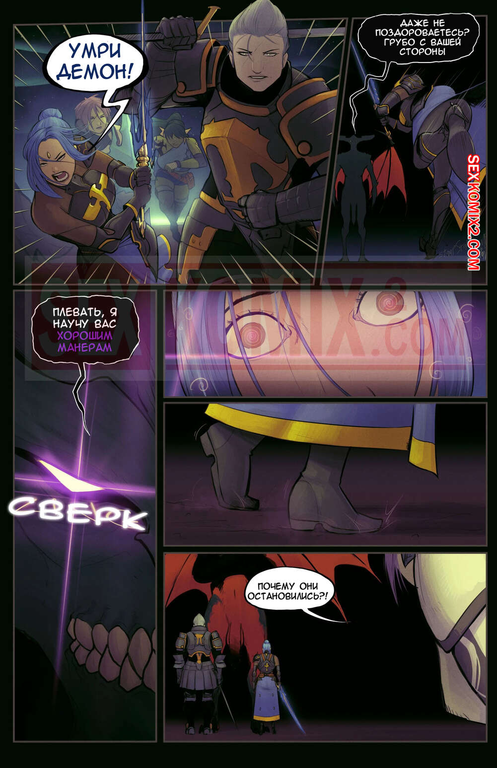 Порно комикс Final Fantasy XIV . Повеселимся. Часть 1. Party Wipe. DevilHS. Демон в аду совсем заскучал, на его удачу группа путников нашли сундук, который моет его призвать. Когда они его открыли демон появился перед ними и приказал ебаться.