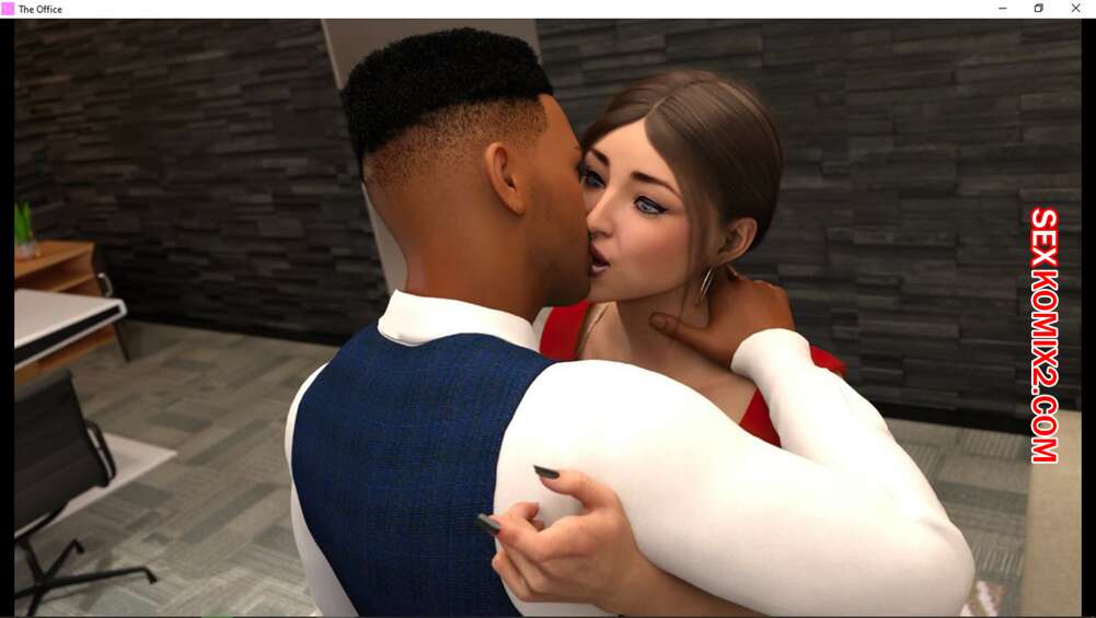 Порно комикс Офис. Часть 4. The Office. Damaged Coda Красотка встретилась с молодым темнокожим парнем, который быстро ее охмурил и они стали страстно целоваться. Сучка быстренько стала отсасывать его большой хуй, после чего парень решил прервать встречу.